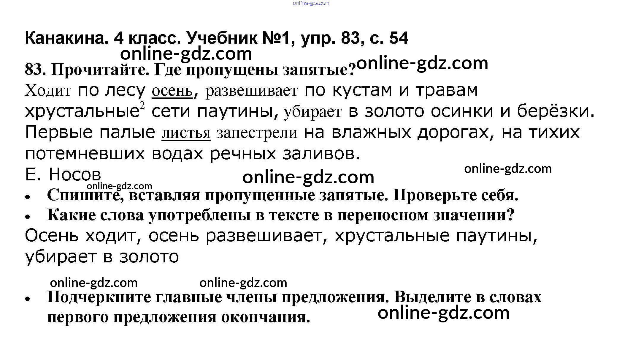 Готовые домашние задания по Русскому языку за 4 класс Учебник Канакина, Горецкий Школа России 2015 - Часть 1 83