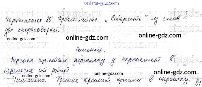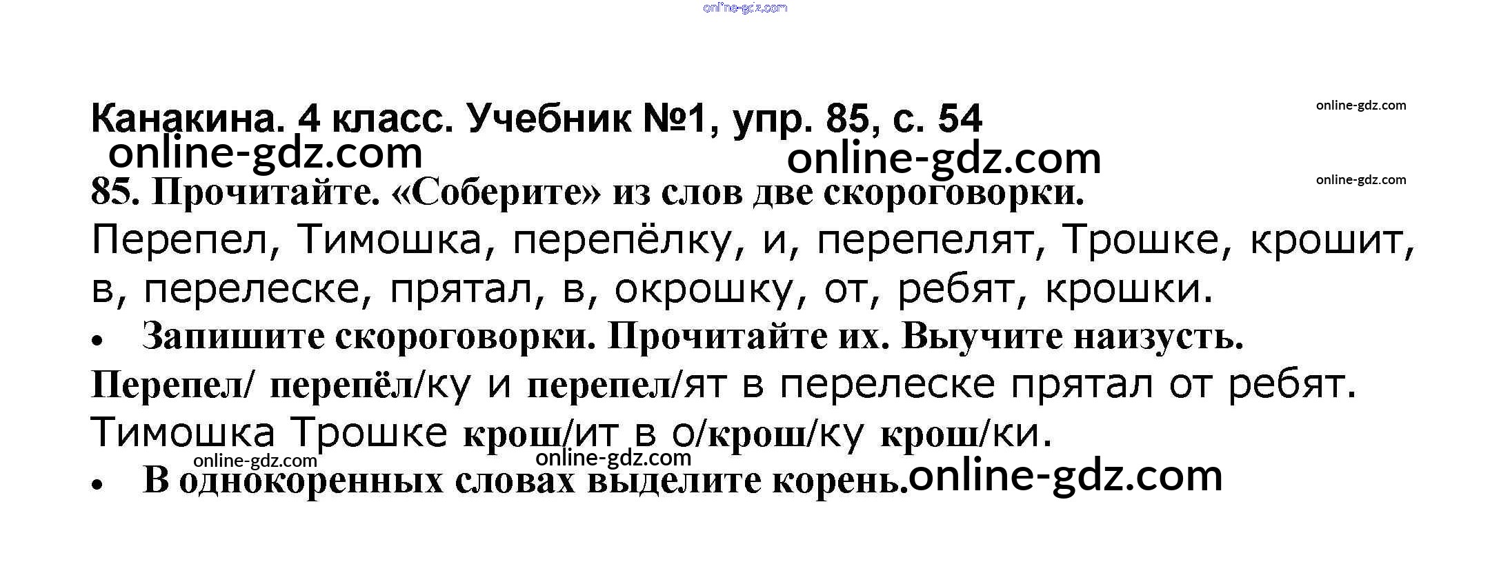 Готовые домашние задания по Русскому языку за 4 класс Учебник Канакина, Горецкий Школа России 2015 - Часть 1 85