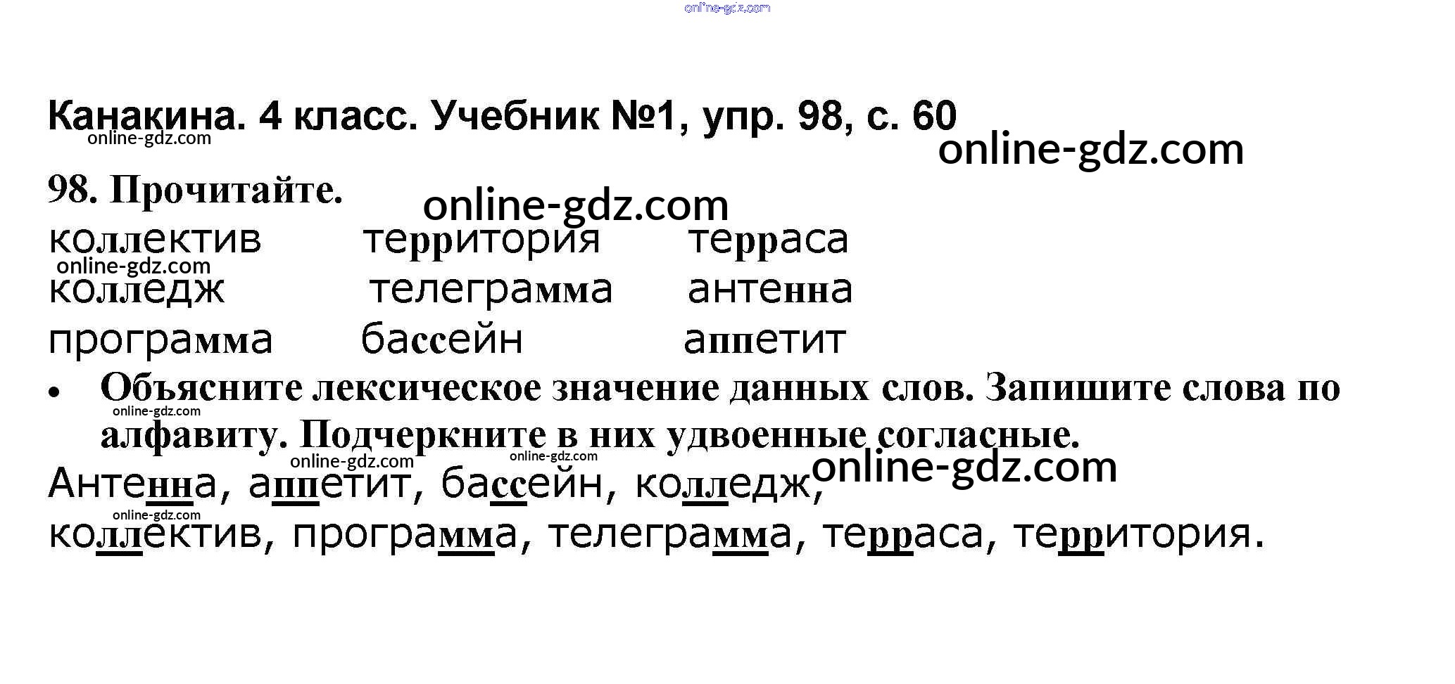 Готовые домашние задания по Русскому языку за 4 класс Учебник Канакина, Горецкий Школа России 2015 - Часть 1 98