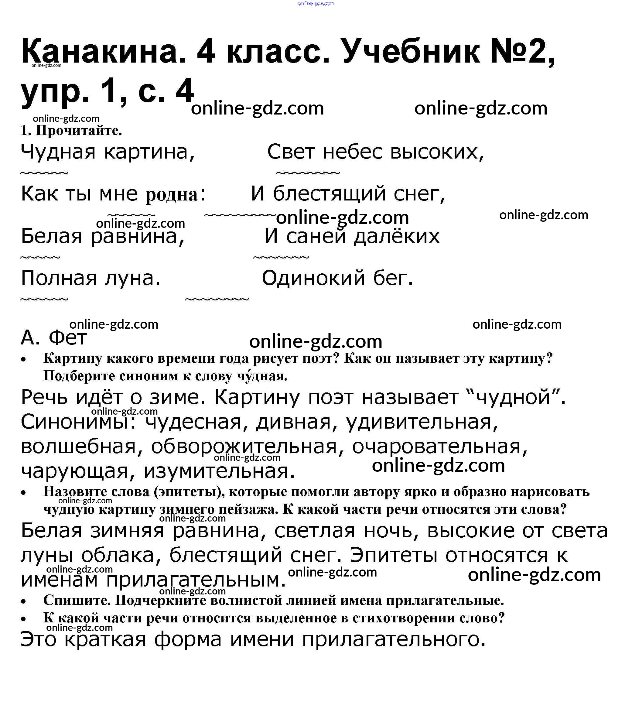 Готовые домашние задания по Русскому языку за 4 класс Учебник Канакина, Горецкий Школа России 2015 - Часть 2 1