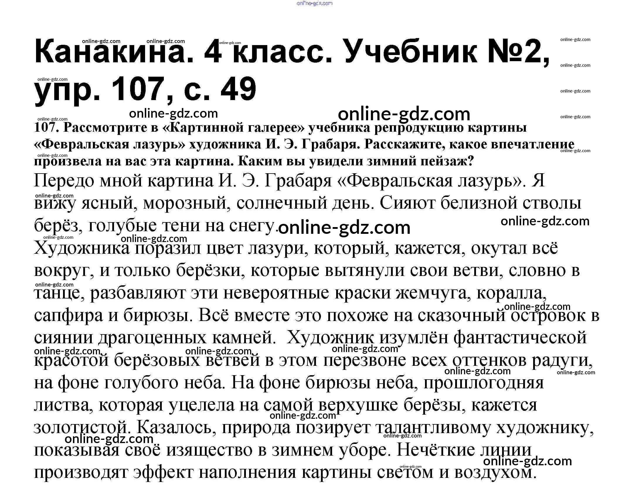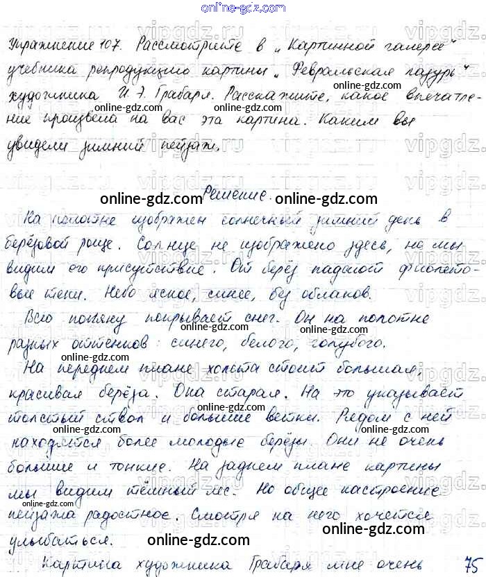 Готовые домашние задания по Русскому языку за 4 класс Учебник Канакина, Горецкий Школа России 2015 - Часть 2 107