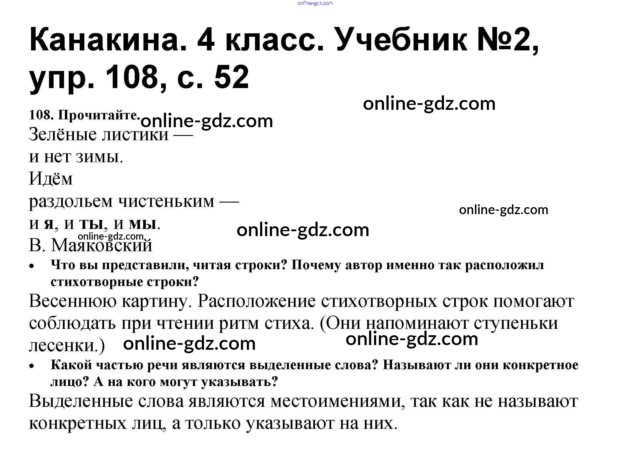 Готовые домашние задания по Русскому языку за 4 класс Учебник Канакина, Горецкий Школа России 2015 - Часть 2 108