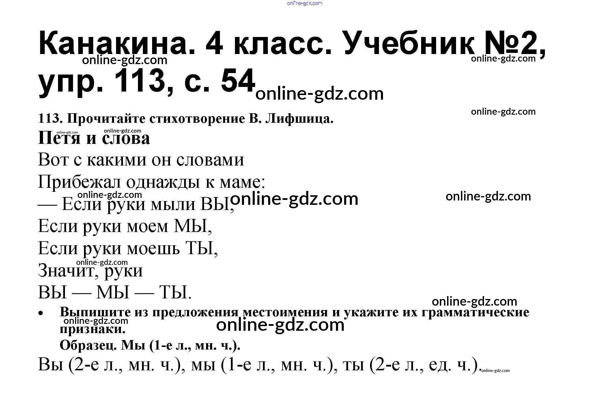 Готовые домашние задания по Русскому языку за 4 класс Учебник Канакина, Горецкий Школа России 2015 - Часть 2 113