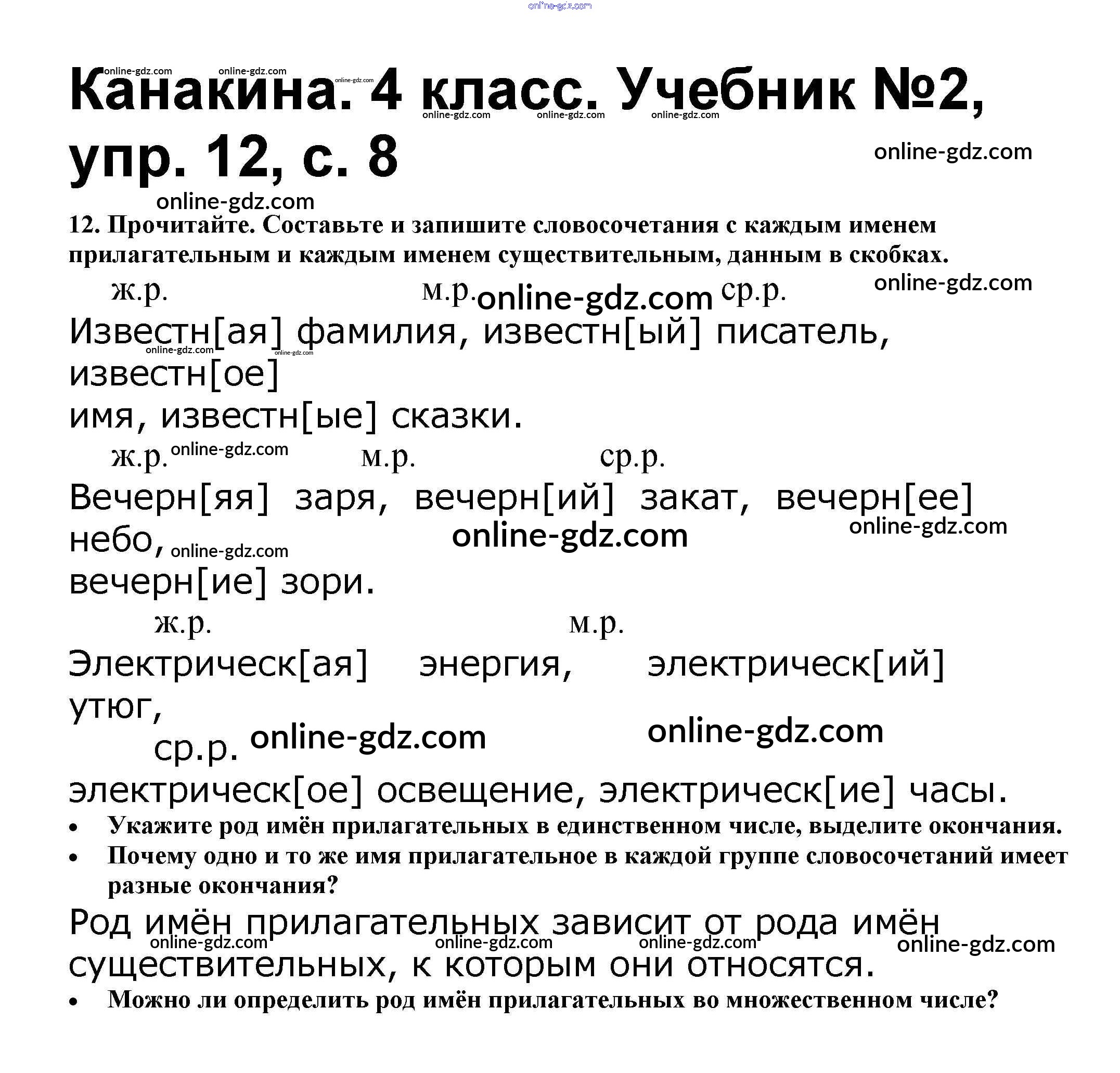 Готовые домашние задания по Русскому языку за 4 класс Учебник Канакина, Горецкий Школа России 2015 - Часть 2 12