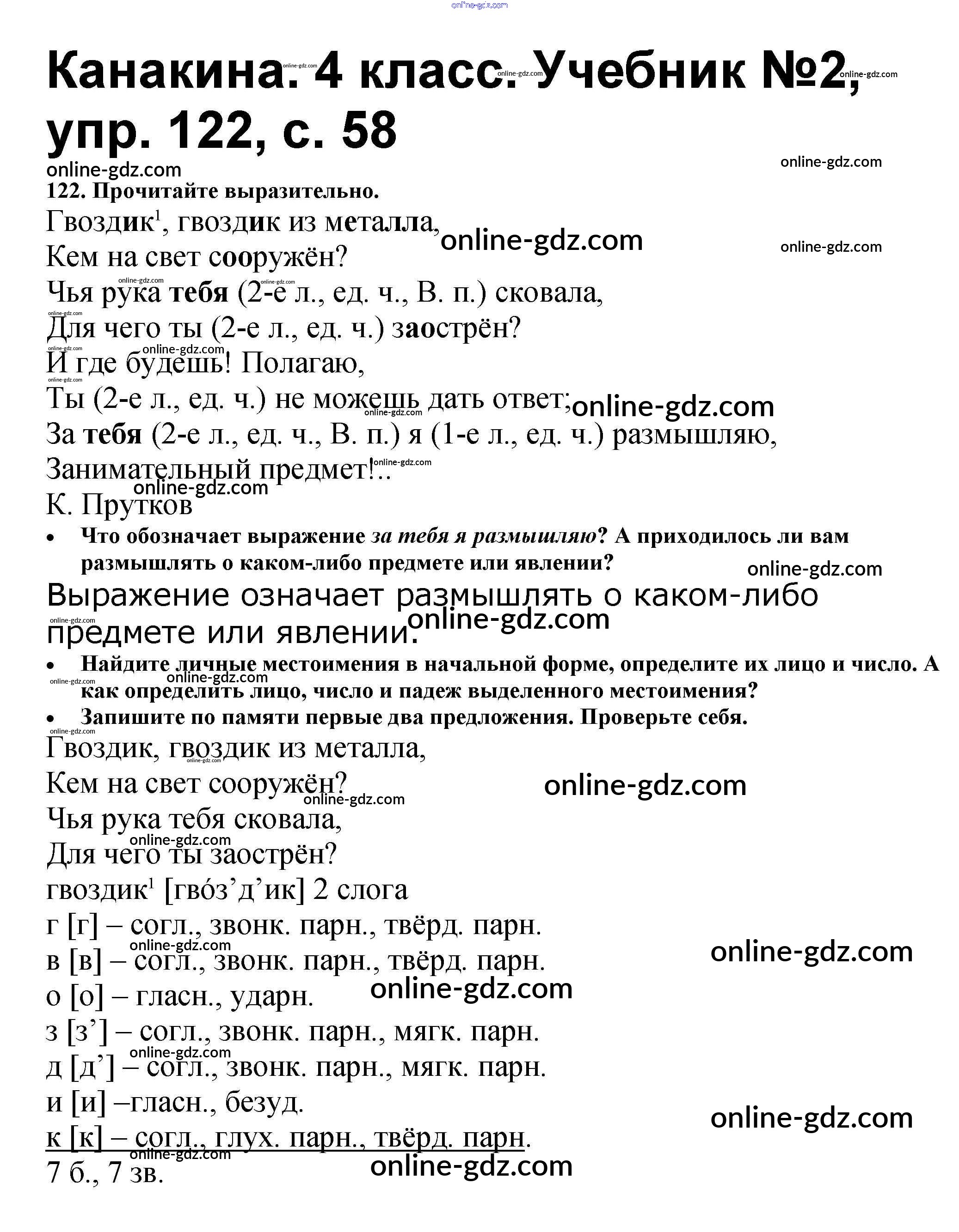 Готовые домашние задания по Русскому языку за 4 класс Учебник Канакина, Горецкий Школа России 2015 - Часть 2 122