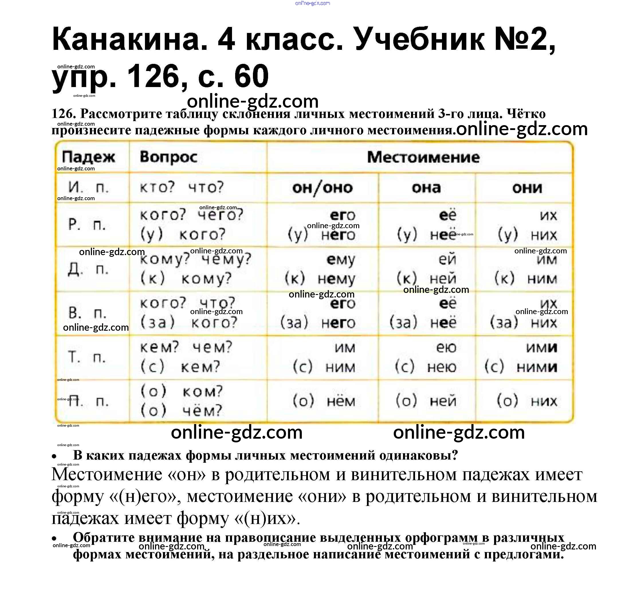 Готовые домашние задания по Русскому языку за 4 класс Учебник Канакина, Горецкий Школа России 2015 - Часть 2 126