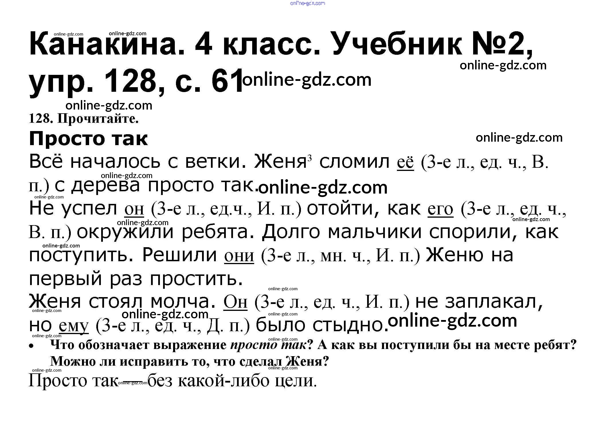 Готовые домашние задания по Русскому языку за 4 класс Учебник Канакина, Горецкий Школа России 2015 - Часть 2 128