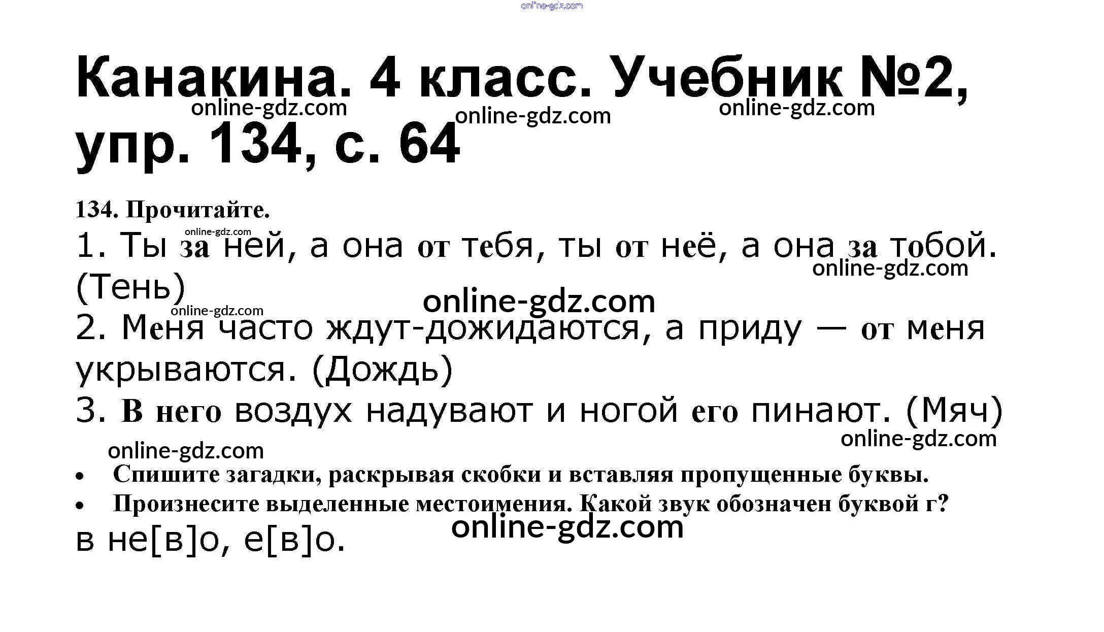 Готовые домашние задания по Русскому языку за 4 класс Учебник Канакина, Горецкий Школа России 2015 - Часть 2 134