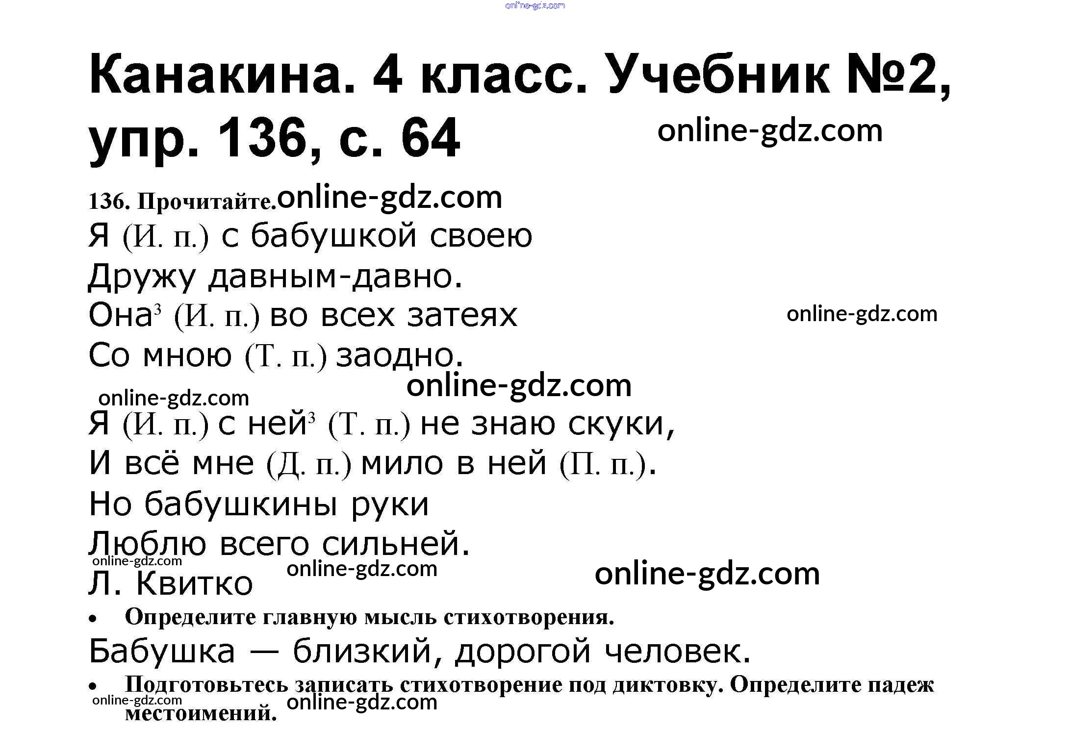 Готовые домашние задания по Русскому языку за 4 класс Учебник Канакина, Горецкий Школа России 2015 - Часть 2 136