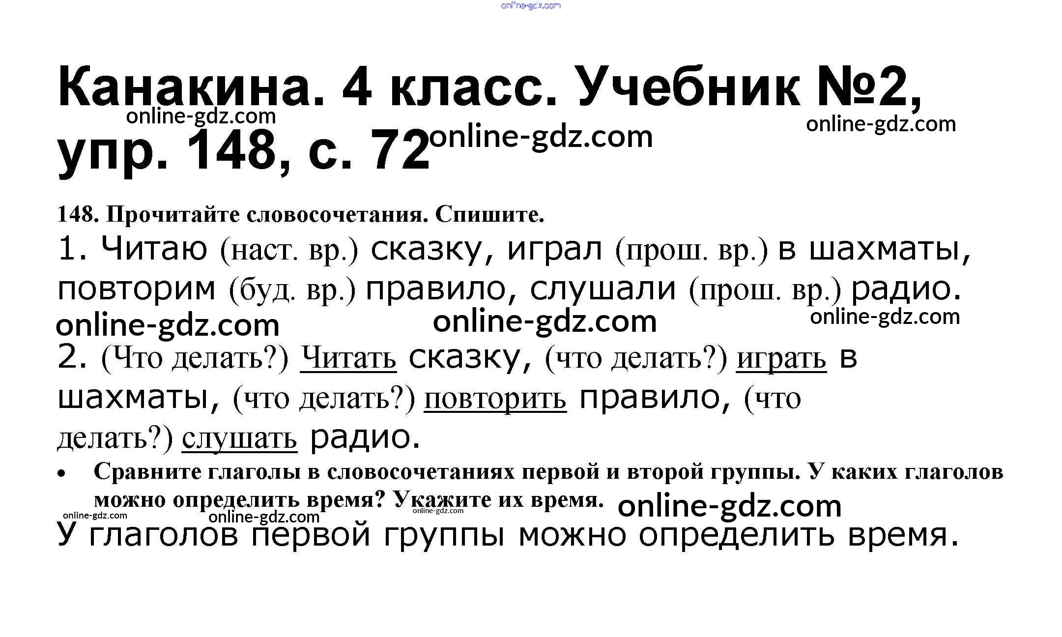 Готовые домашние задания по Русскому языку за 4 класс Учебник Канакина, Горецкий Школа России 2015 - Часть 2 148