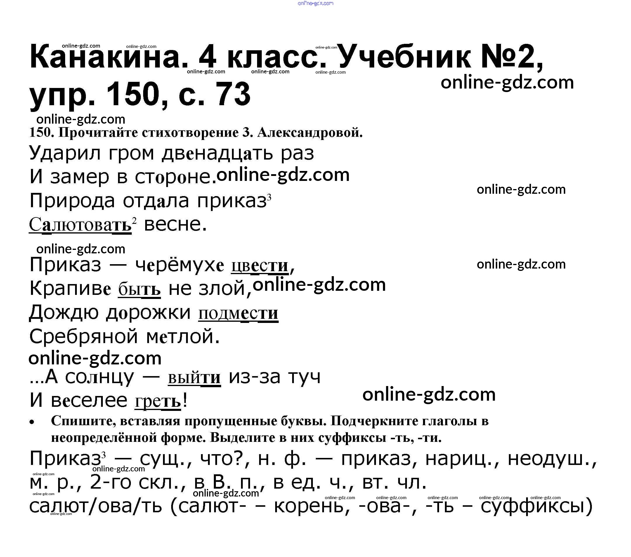 Готовые домашние задания по Русскому языку за 4 класс Учебник Канакина, Горецкий Школа России 2015 - Часть 2 150