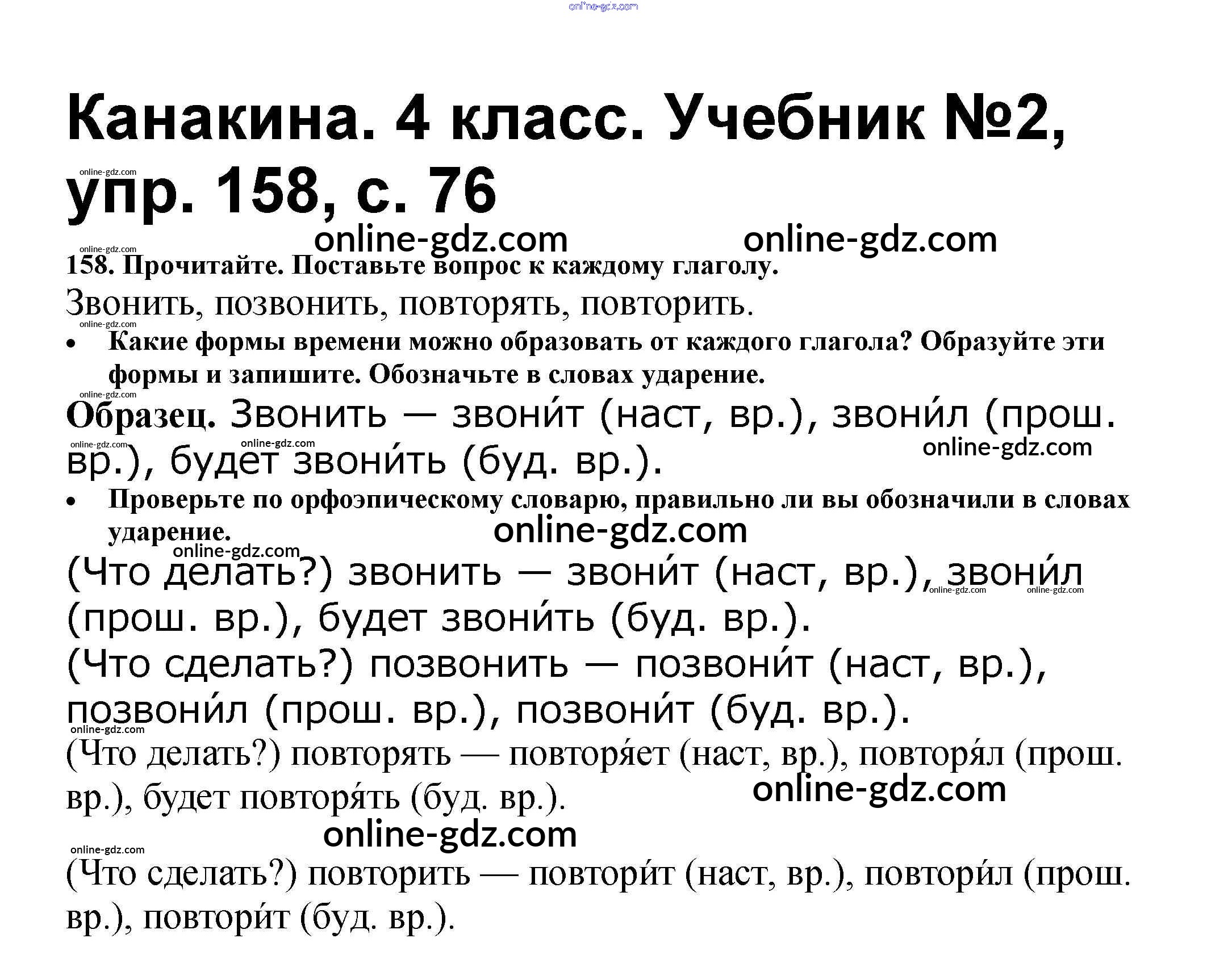 Готовые домашние задания по Русскому языку за 4 класс Учебник Канакина, Горецкий Школа России 2015 - Часть 2 158
