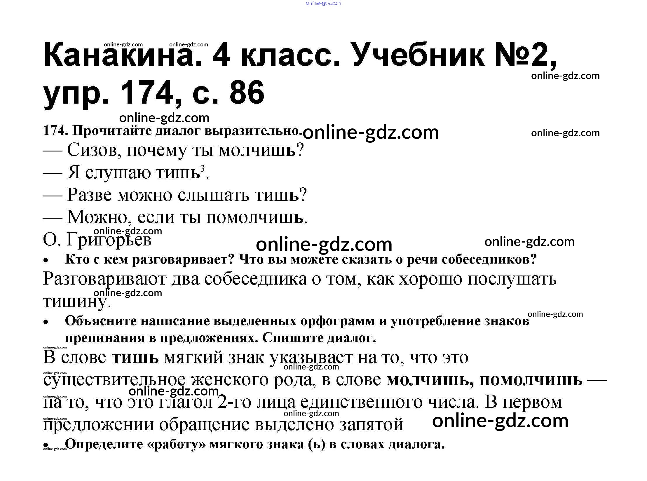 Готовые домашние задания по Русскому языку за 4 класс Учебник Канакина, Горецкий Школа России 2015 - Часть 2 174