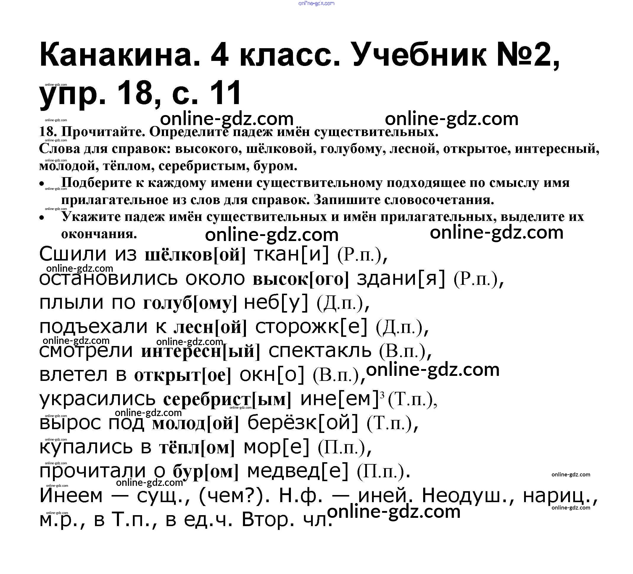 Готовые домашние задания по Русскому языку за 4 класс Учебник Канакина, Горецкий Школа России 2015 - Часть 2 18