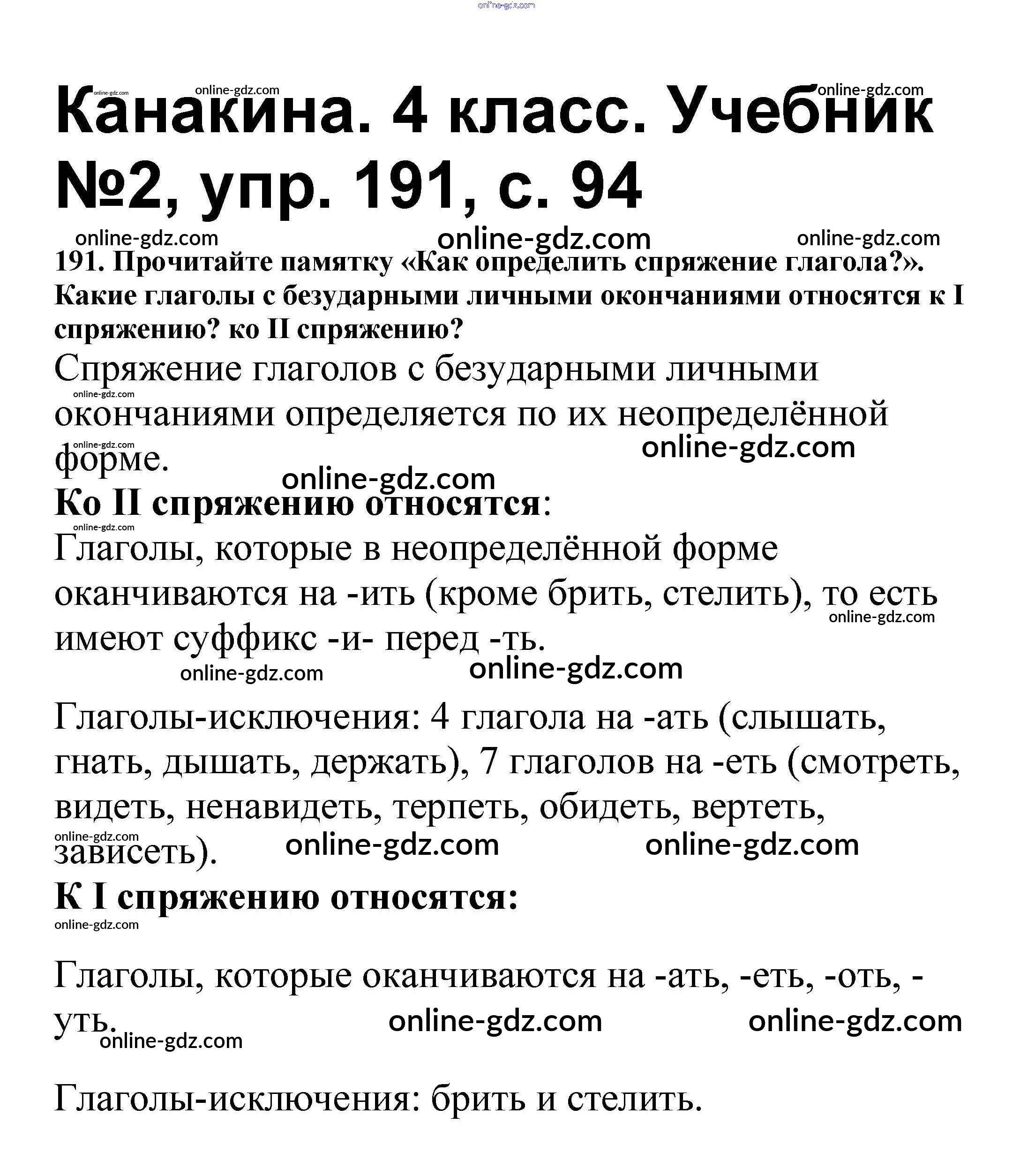 Готовые домашние задания по Русскому языку за 4 класс Учебник Канакина, Горецкий Школа России 2015 - Часть 2 191