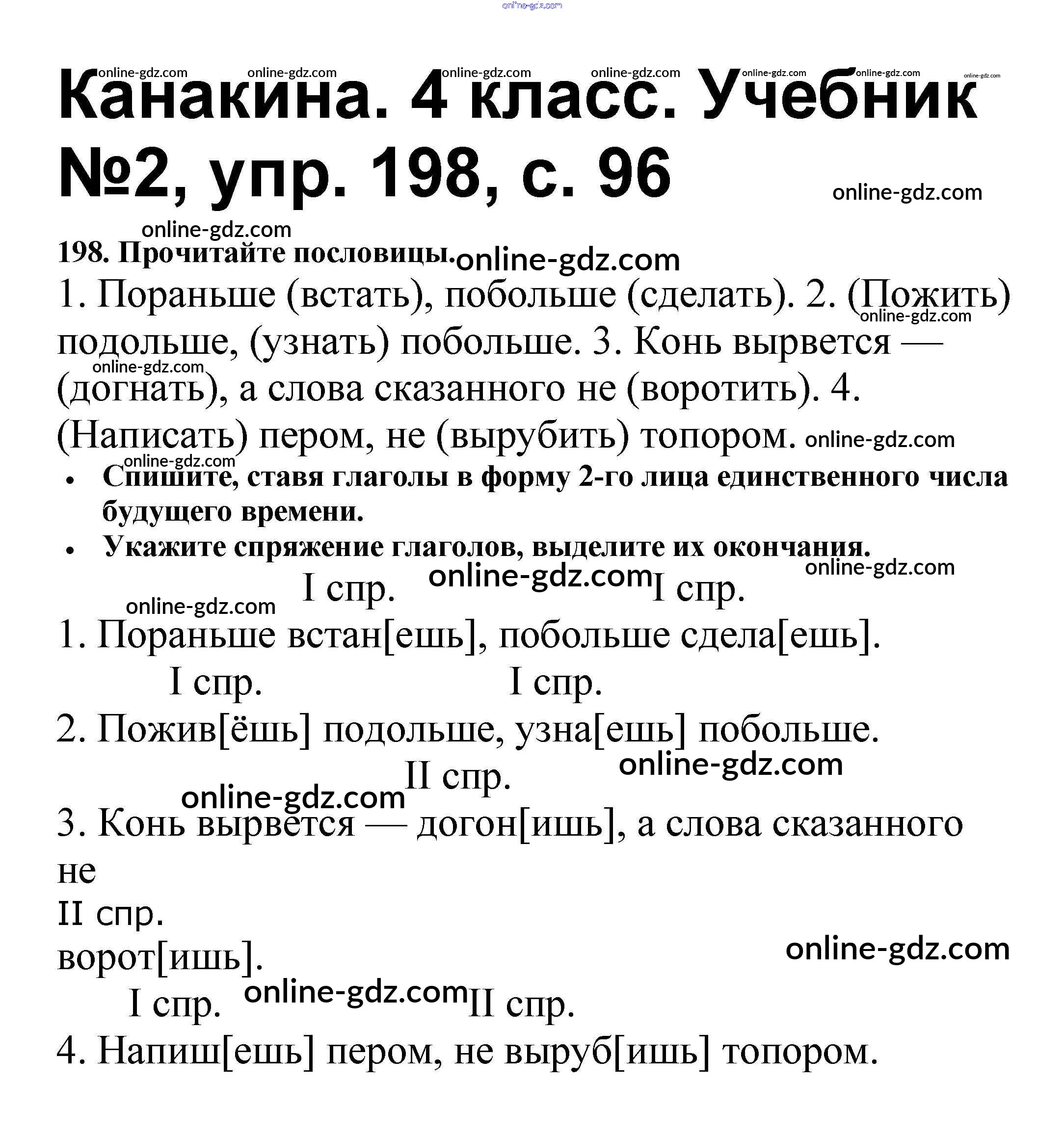 Готовые домашние задания по Русскому языку за 4 класс Учебник Канакина, Горецкий Школа России 2015 - Часть 2 198