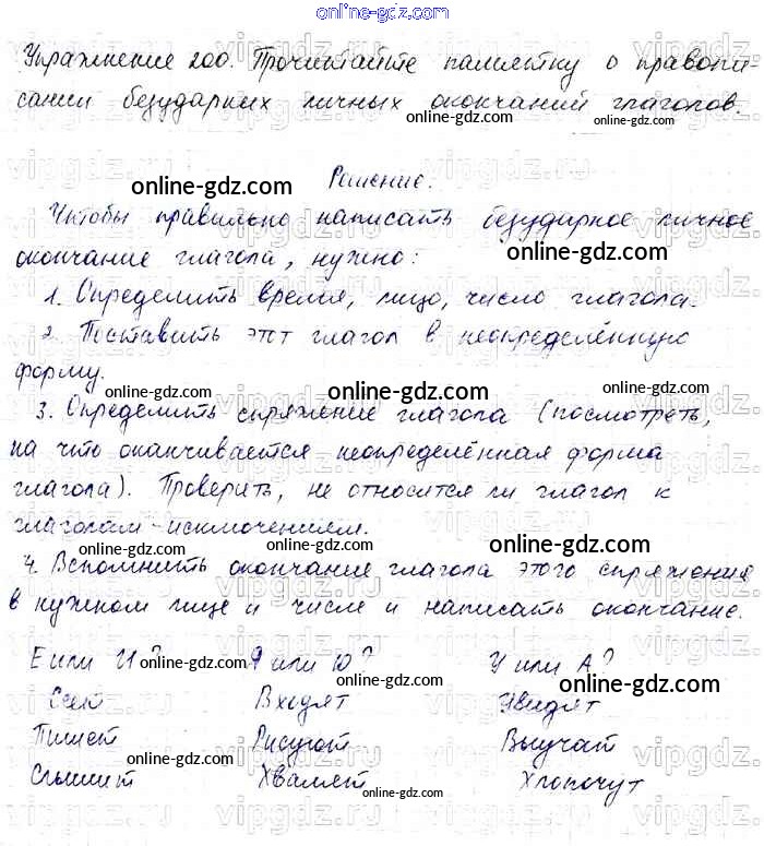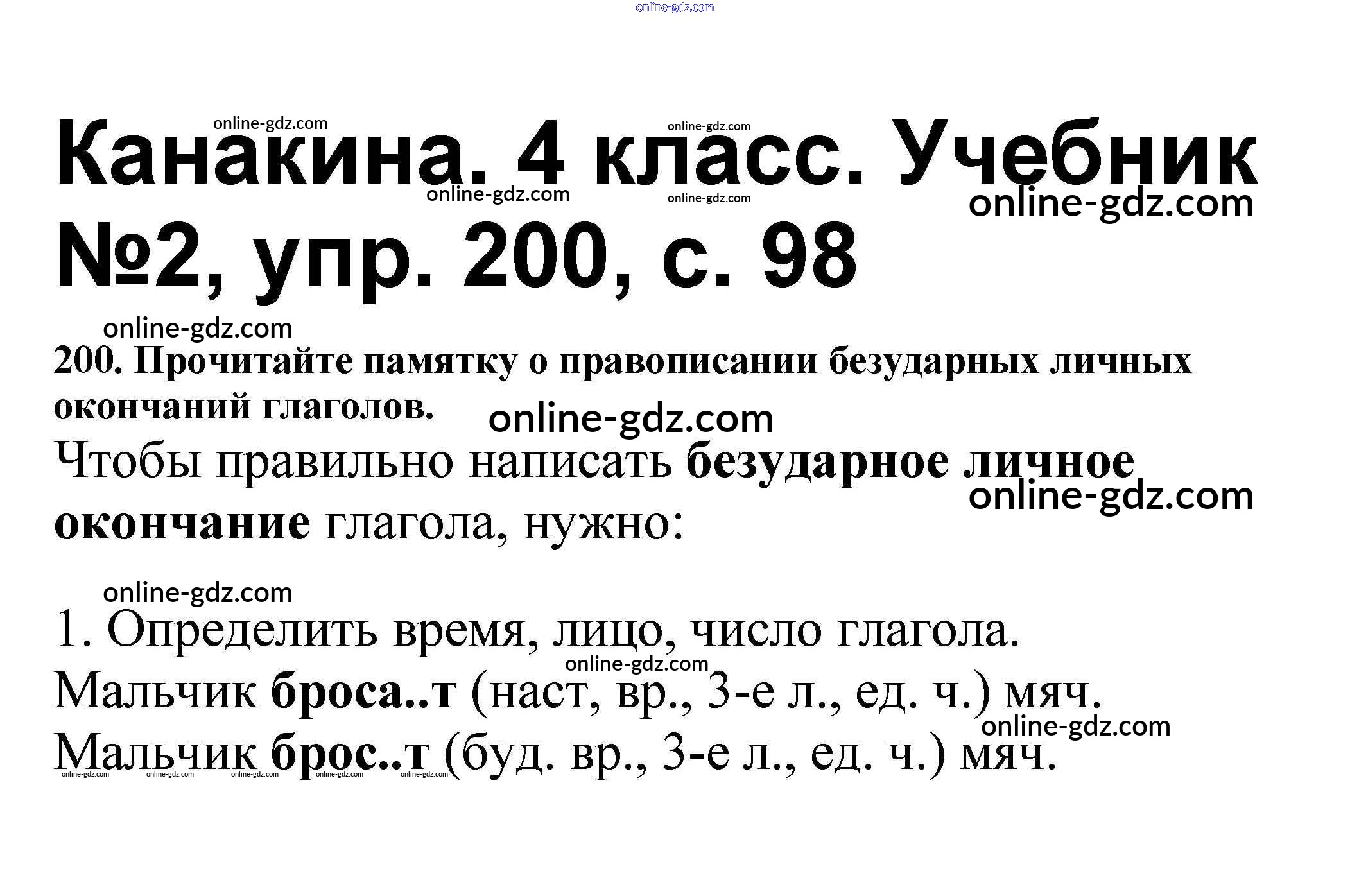 Готовые домашние задания по Русскому языку за 4 класс Учебник Канакина, Горецкий Школа России 2015 - Часть 2 200