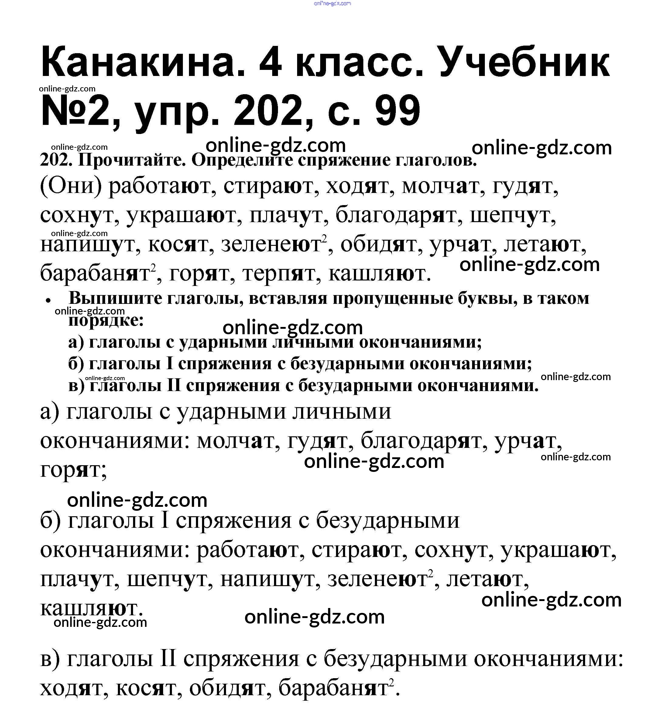 Готовые домашние задания по Русскому языку за 4 класс Учебник Канакина, Горецкий Школа России 2015 - Часть 2 202