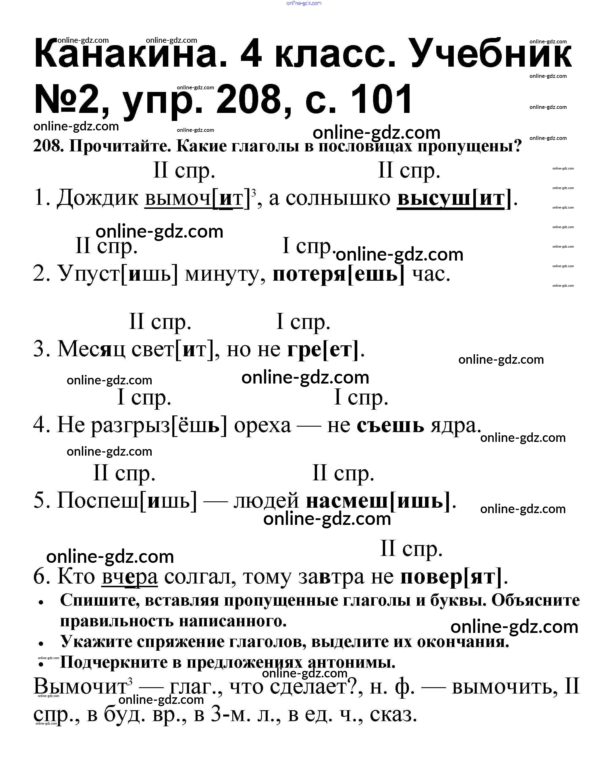 Готовые домашние задания по Русскому языку за 4 класс Учебник Канакина, Горецкий Школа России 2015 - Часть 2 208