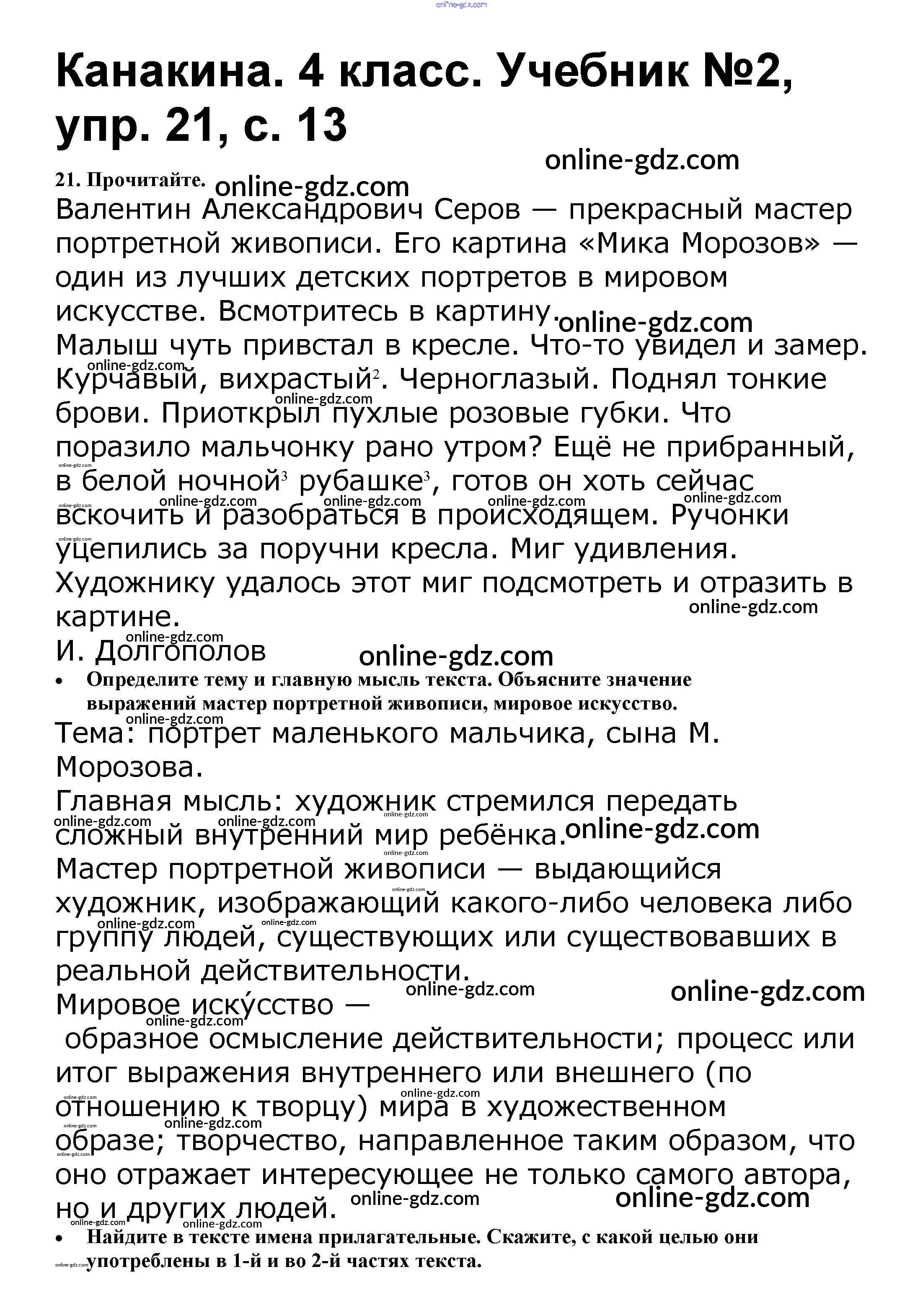 Готовые домашние задания по Русскому языку за 4 класс Учебник Канакина, Горецкий Школа России 2015 - Часть 2 21