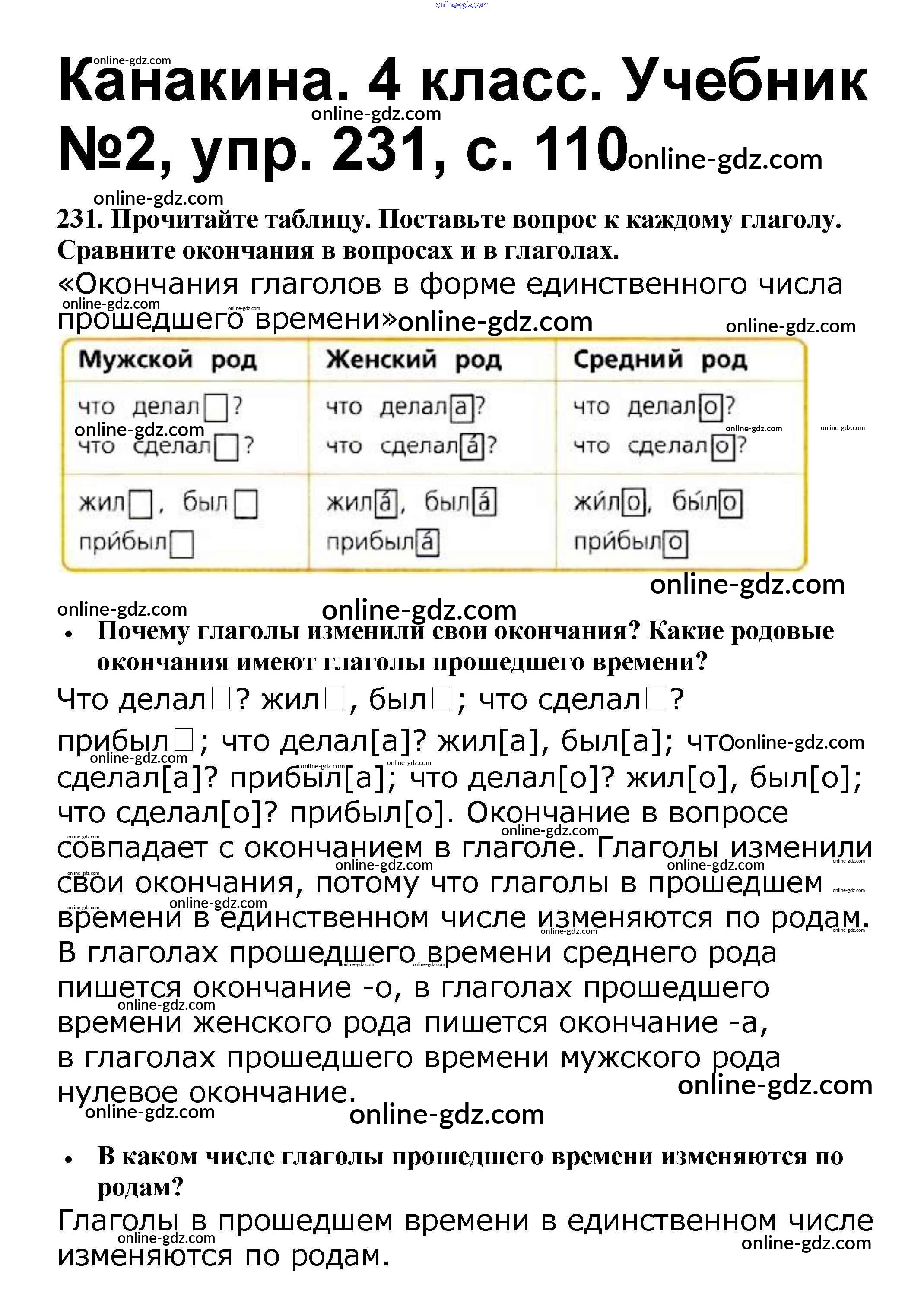 Готовые домашние задания по Русскому языку за 4 класс Учебник Канакина, Горецкий Школа России 2015 - Часть 2 231