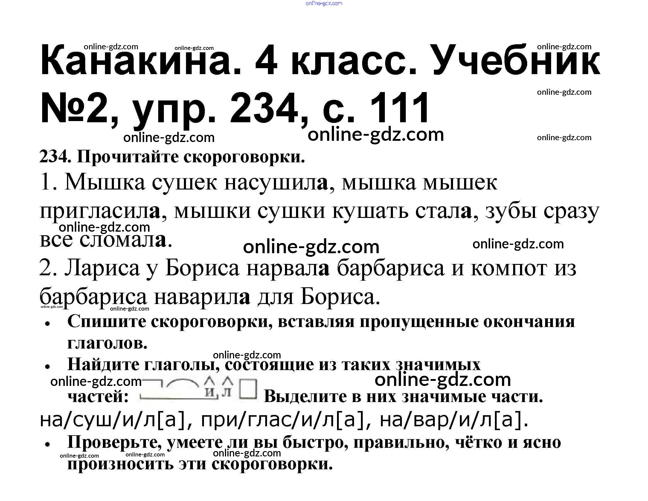 Готовые домашние задания по Русскому языку за 4 класс Учебник Канакина, Горецкий Школа России 2015 - Часть 2 234