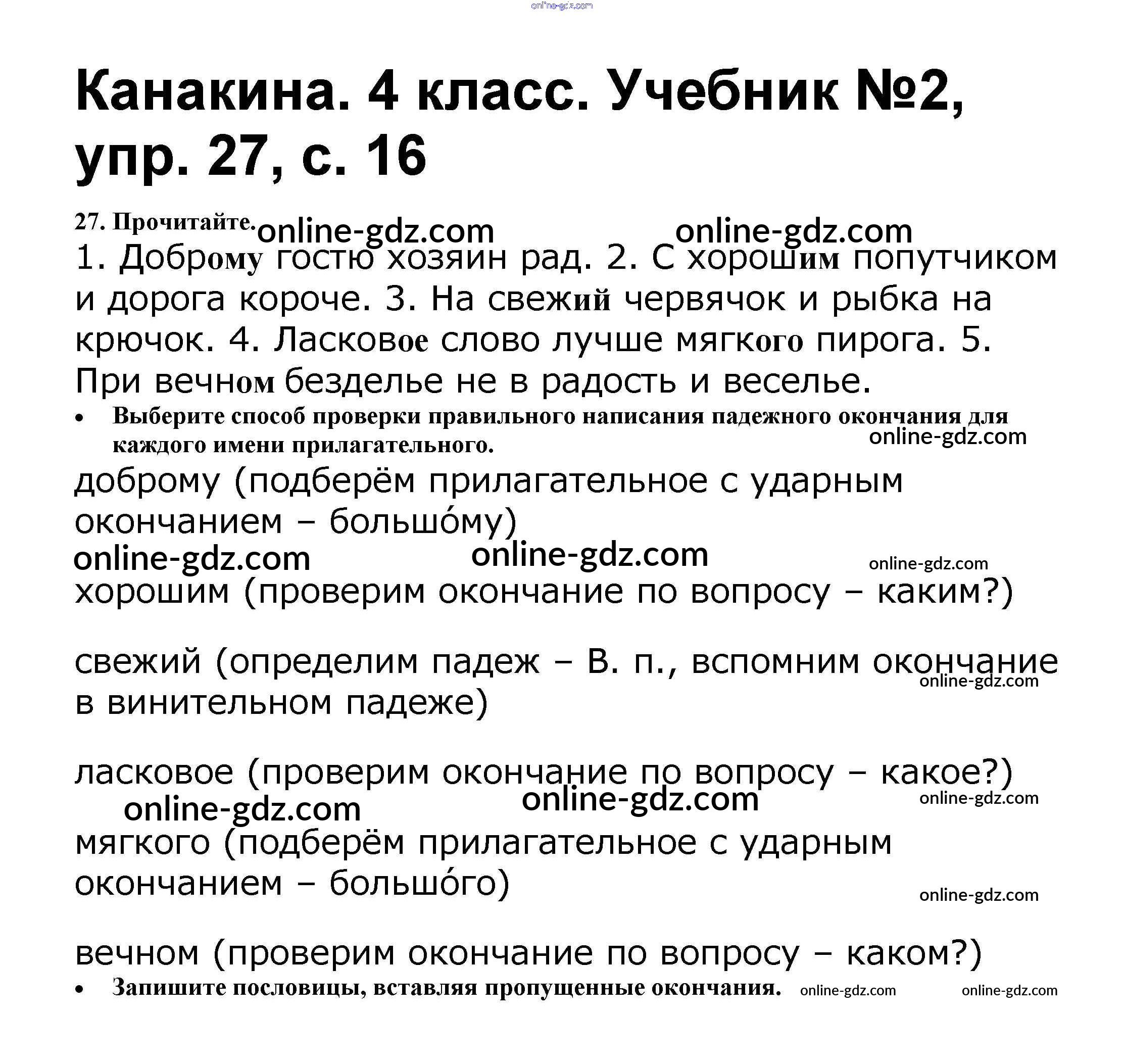 Готовые домашние задания по Русскому языку за 4 класс Учебник Канакина, Горецкий Школа России 2015 - Часть 2 27