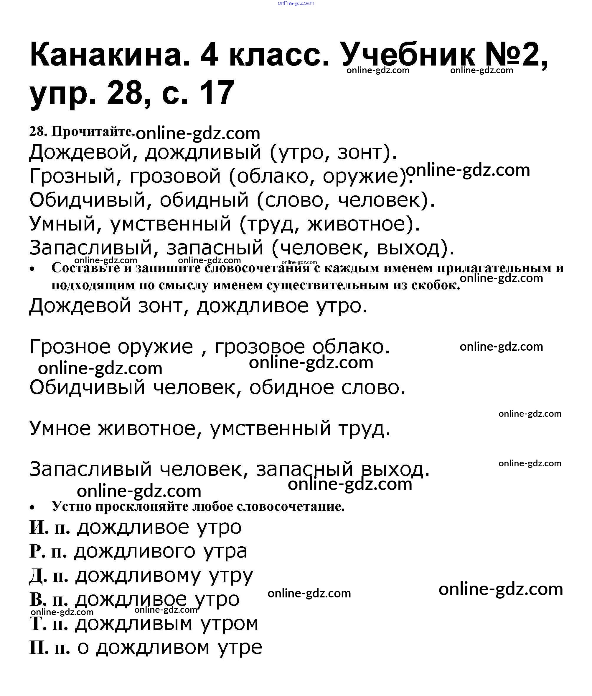 Готовые домашние задания по Русскому языку за 4 класс Учебник Канакина, Горецкий Школа России 2015 - Часть 2 28