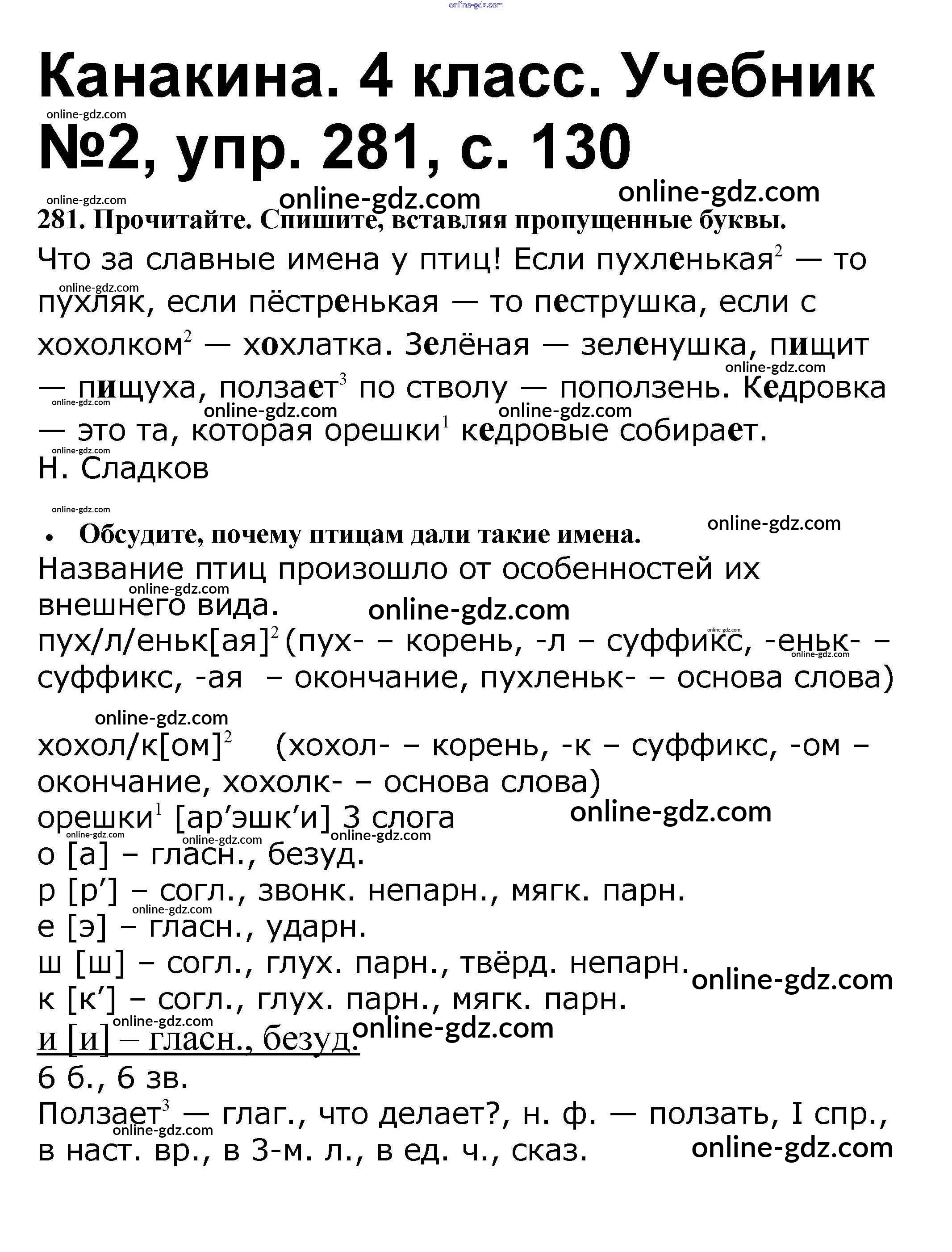 Готовые домашние задания по Русскому языку за 4 класс Учебник Канакина, Горецкий Школа России 2015 - Часть 2 281