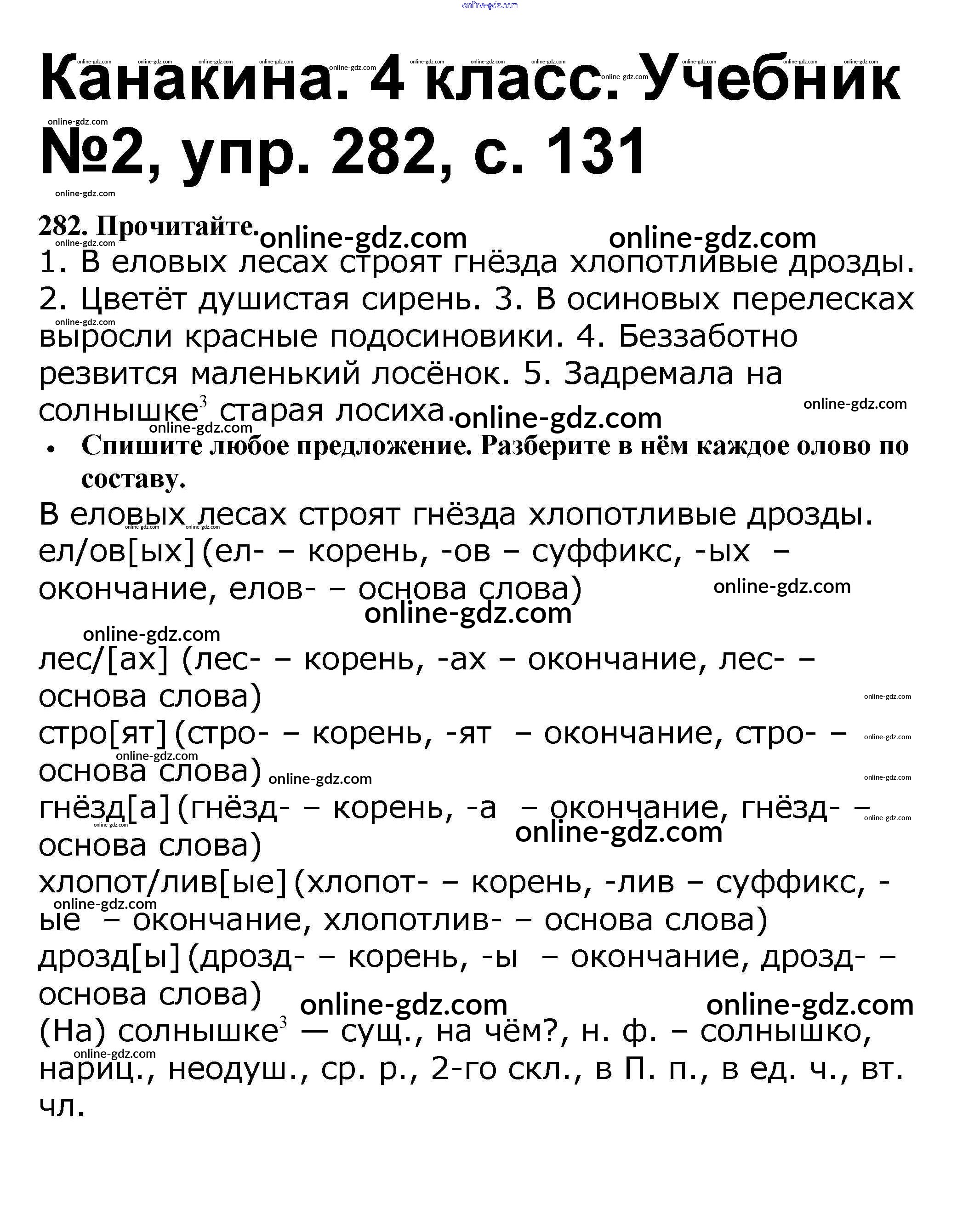 Готовые домашние задания по Русскому языку за 4 класс Учебник Канакина, Горецкий Школа России 2015 - Часть 2 282