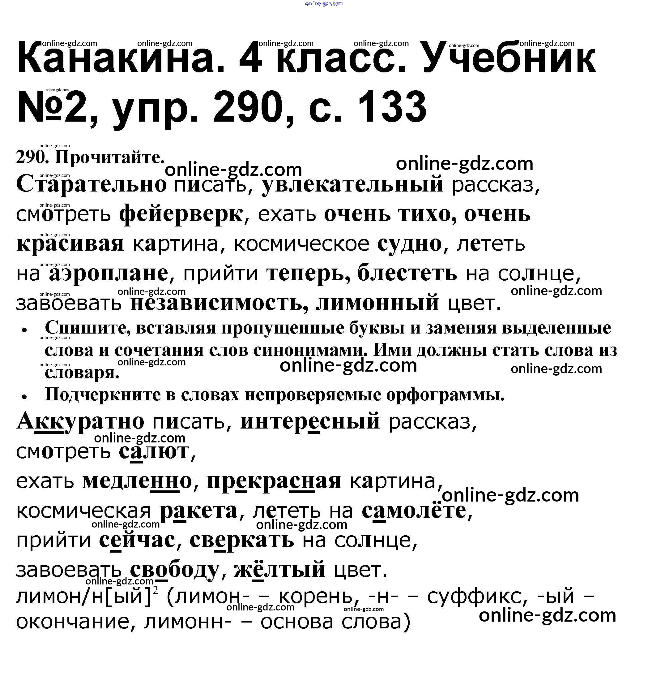 Готовые домашние задания по Русскому языку за 4 класс Учебник Канакина, Горецкий Школа России 2015 - Часть 2 290