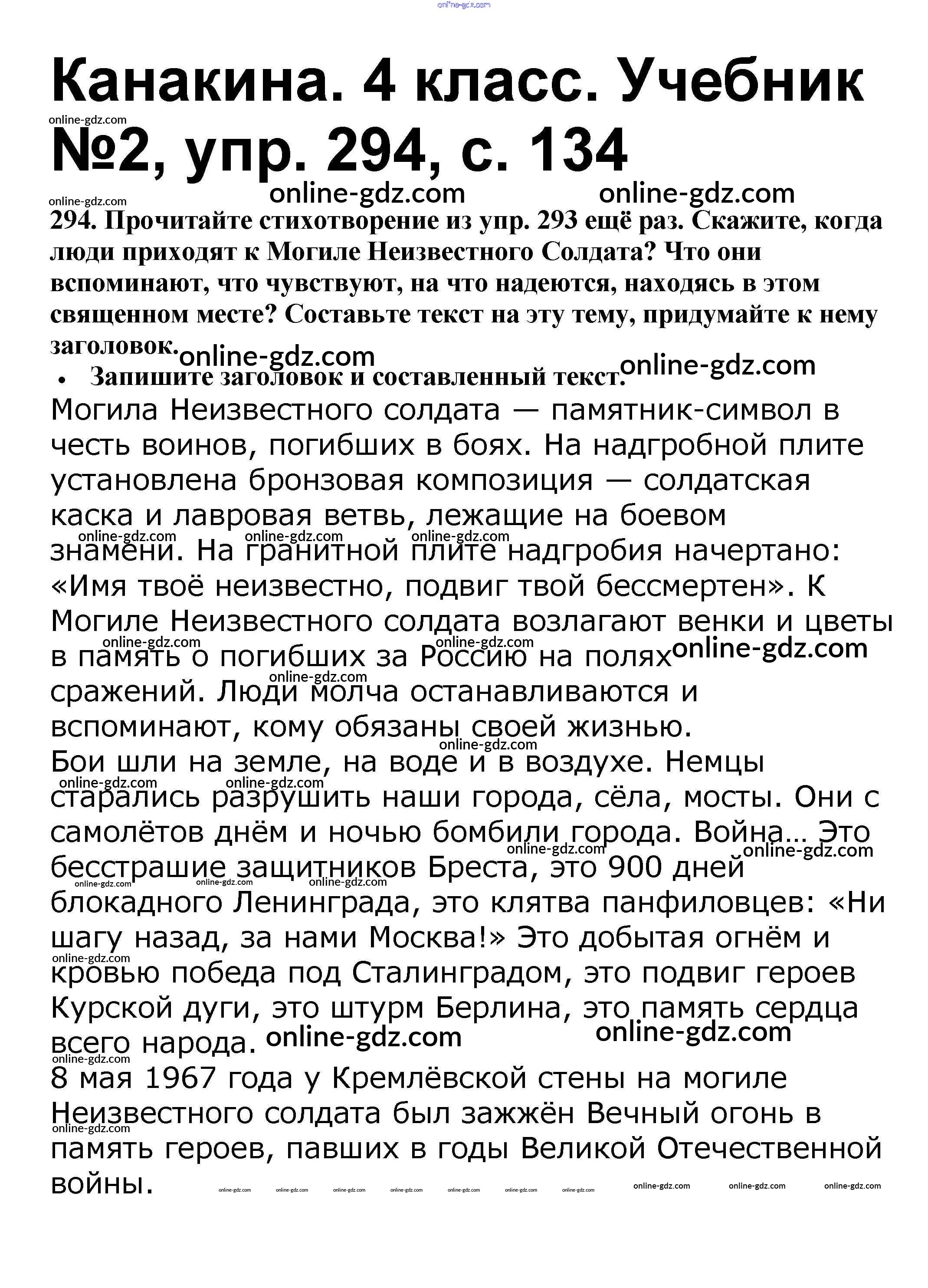 Готовые домашние задания по Русскому языку за 4 класс Учебник Канакина, Горецкий Школа России 2015 - Часть 2 294