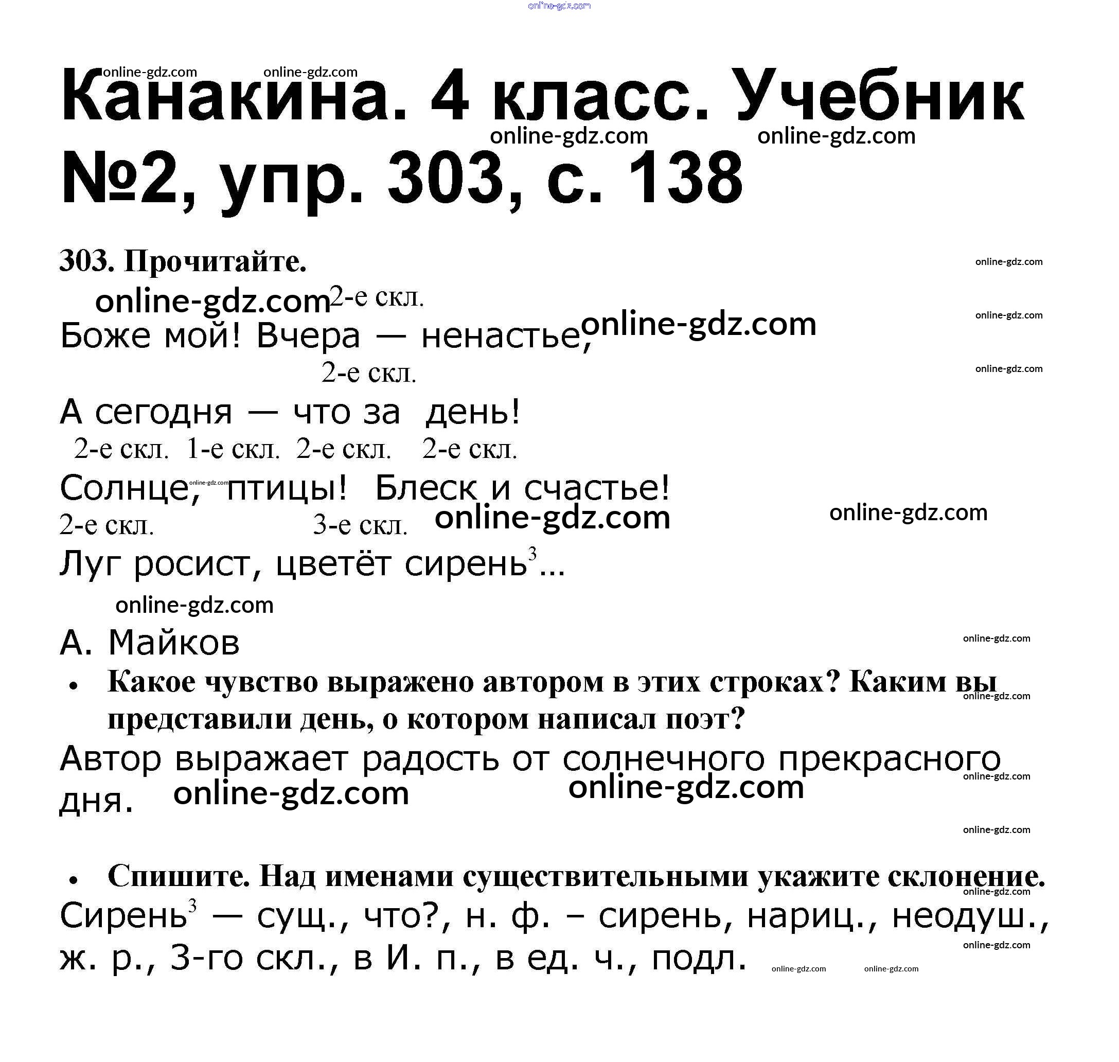 Готовые домашние задания по Русскому языку за 4 класс Учебник Канакина, Горецкий Школа России 2015 - Часть 2 303