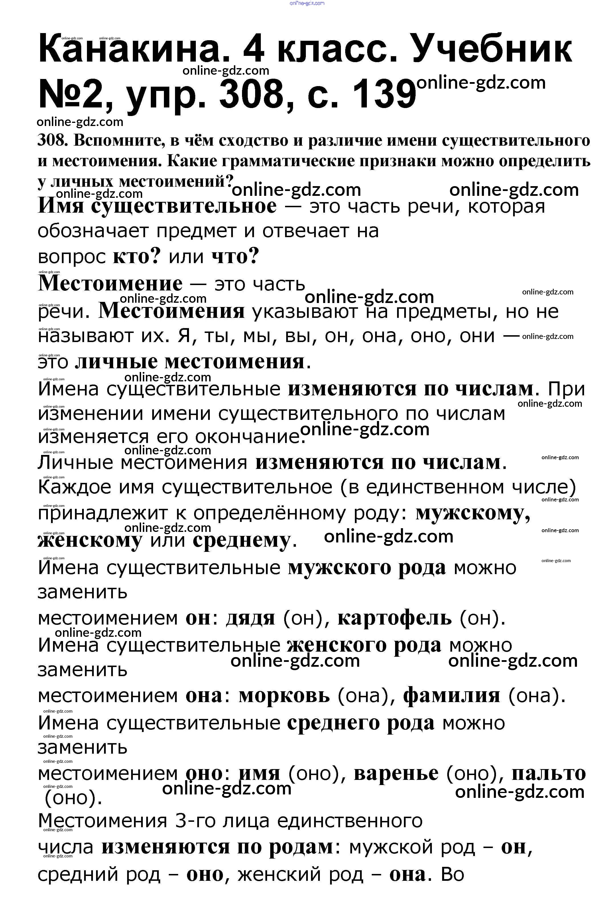 Готовые домашние задания по Русскому языку за 4 класс Учебник Канакина, Горецкий Школа России 2015 - Часть 2 308