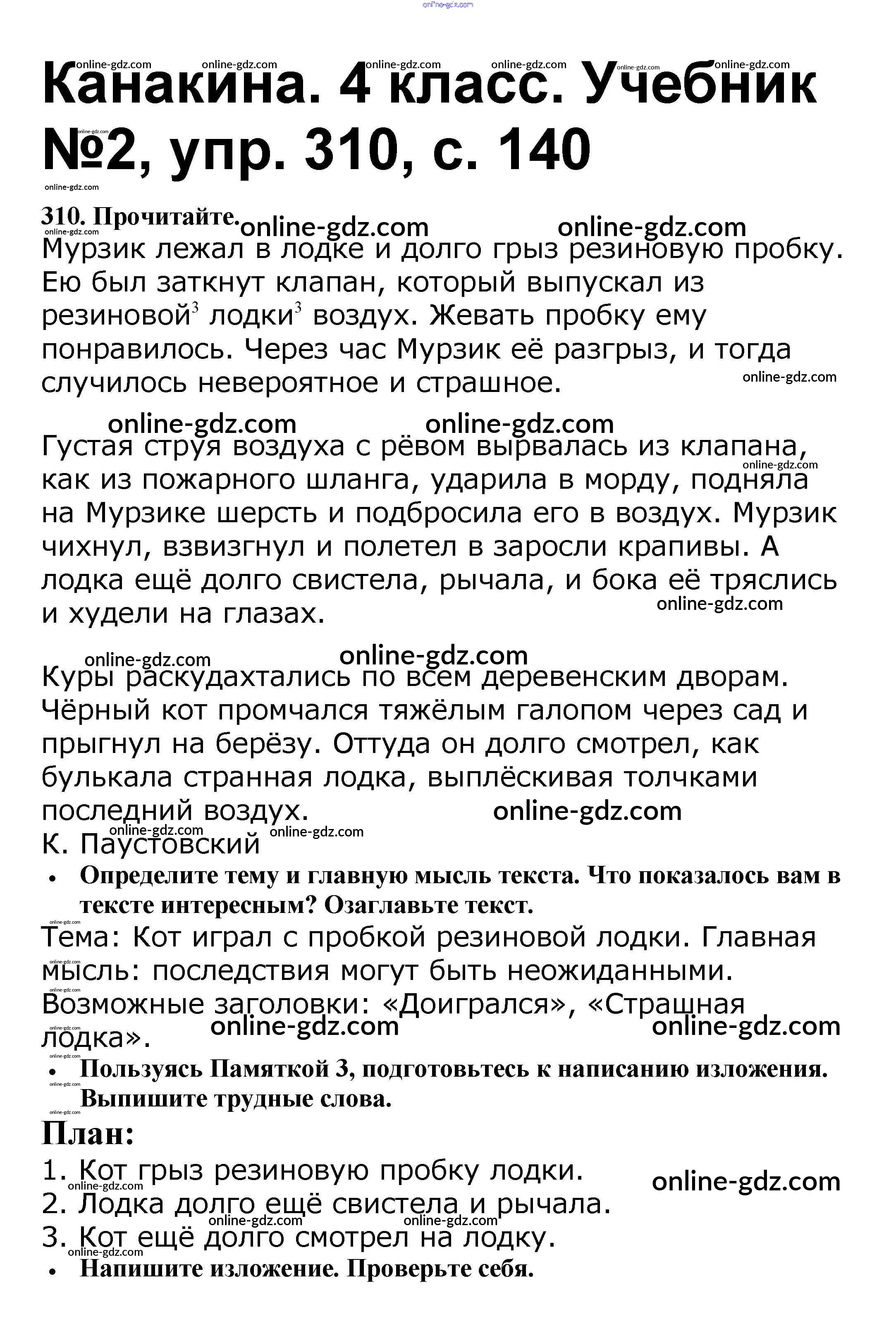 Готовые домашние задания по Русскому языку за 4 класс Учебник Канакина, Горецкий Школа России 2015 - Часть 2 310