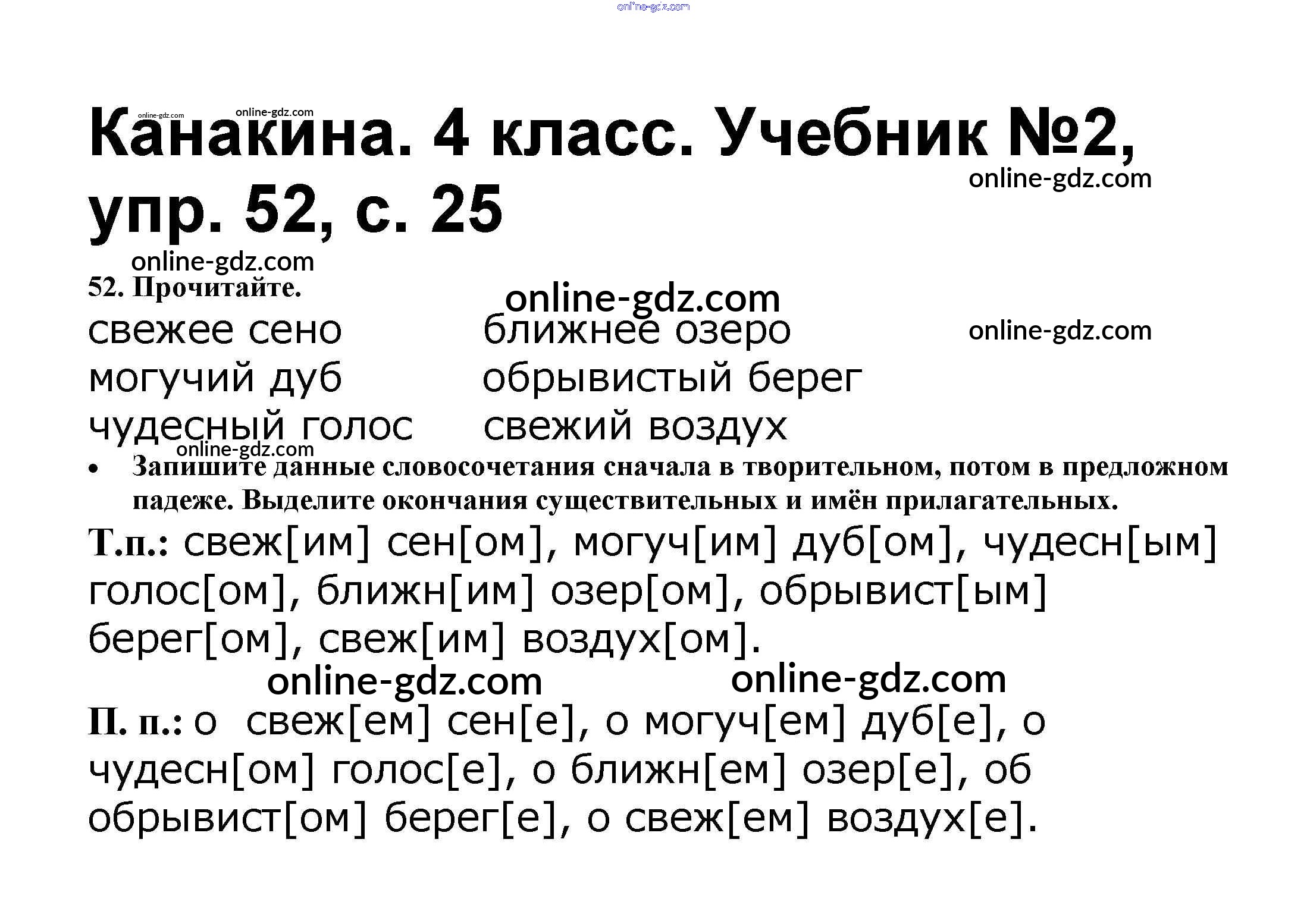 Готовые домашние задания по Русскому языку за 4 класс Учебник Канакина, Горецкий Школа России 2015 - Часть 2 52