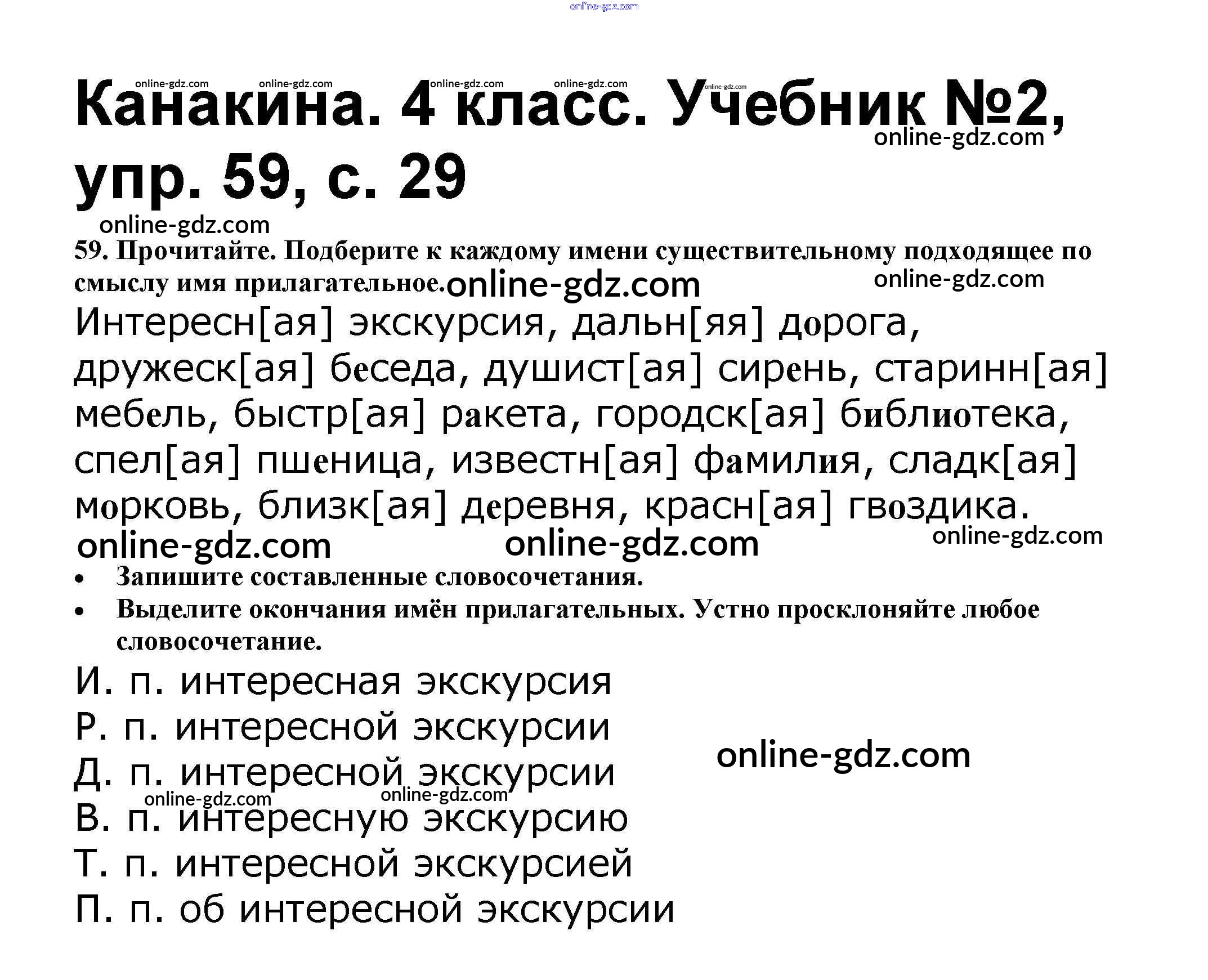 Готовые домашние задания по Русскому языку за 4 класс Учебник Канакина, Горецкий Школа России 2015 - Часть 2 59