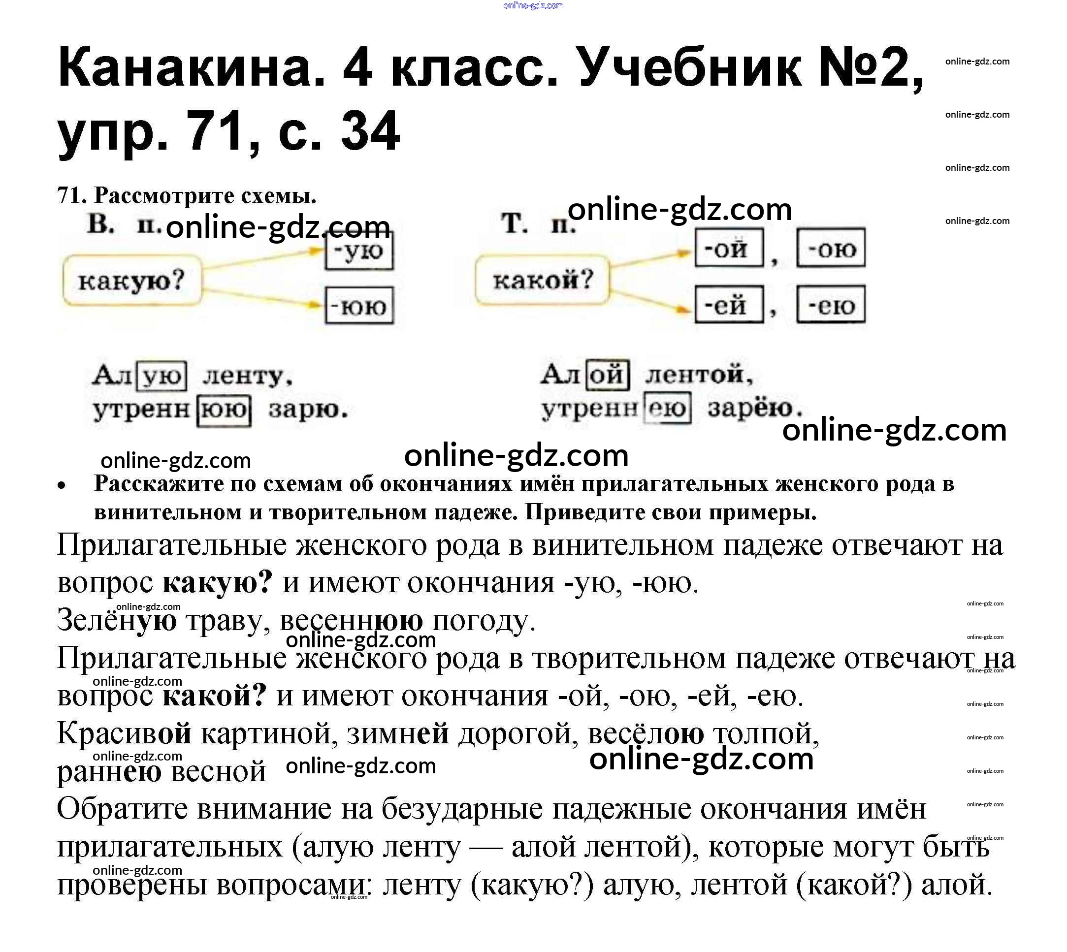 Готовые домашние задания по Русскому языку за 4 класс Учебник Канакина, Горецкий Школа России 2015 - Часть 2 71