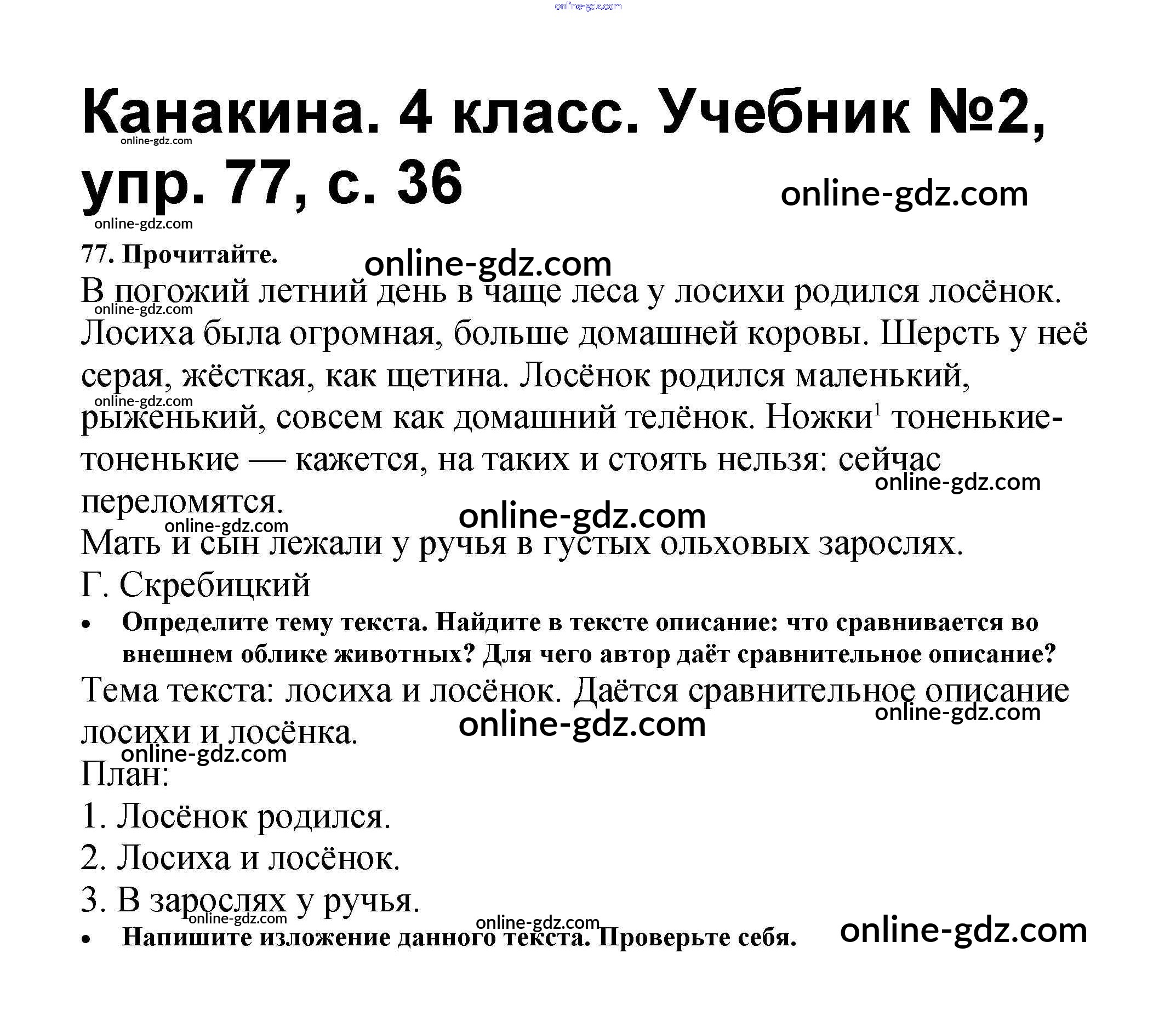Готовые домашние задания по Русскому языку за 4 класс Учебник Канакина, Горецкий Школа России 2015 - Часть 2 77