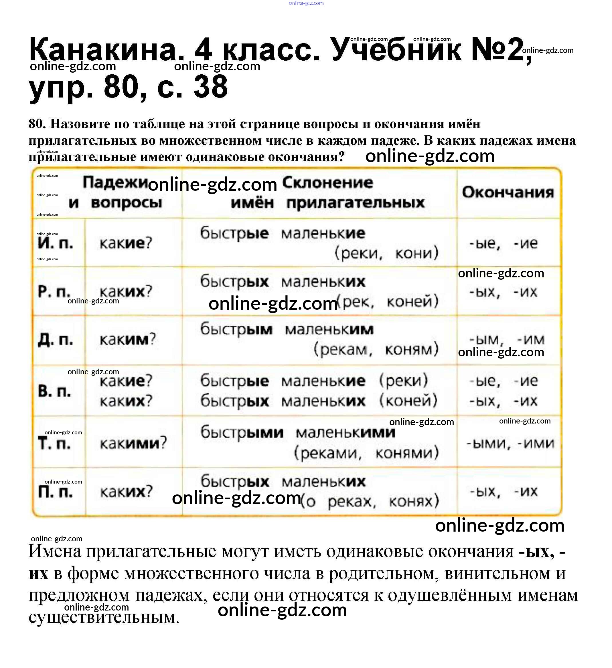 Готовые домашние задания по Русскому языку за 4 класс Учебник Канакина, Горецкий Школа России 2015 - Часть 2 80