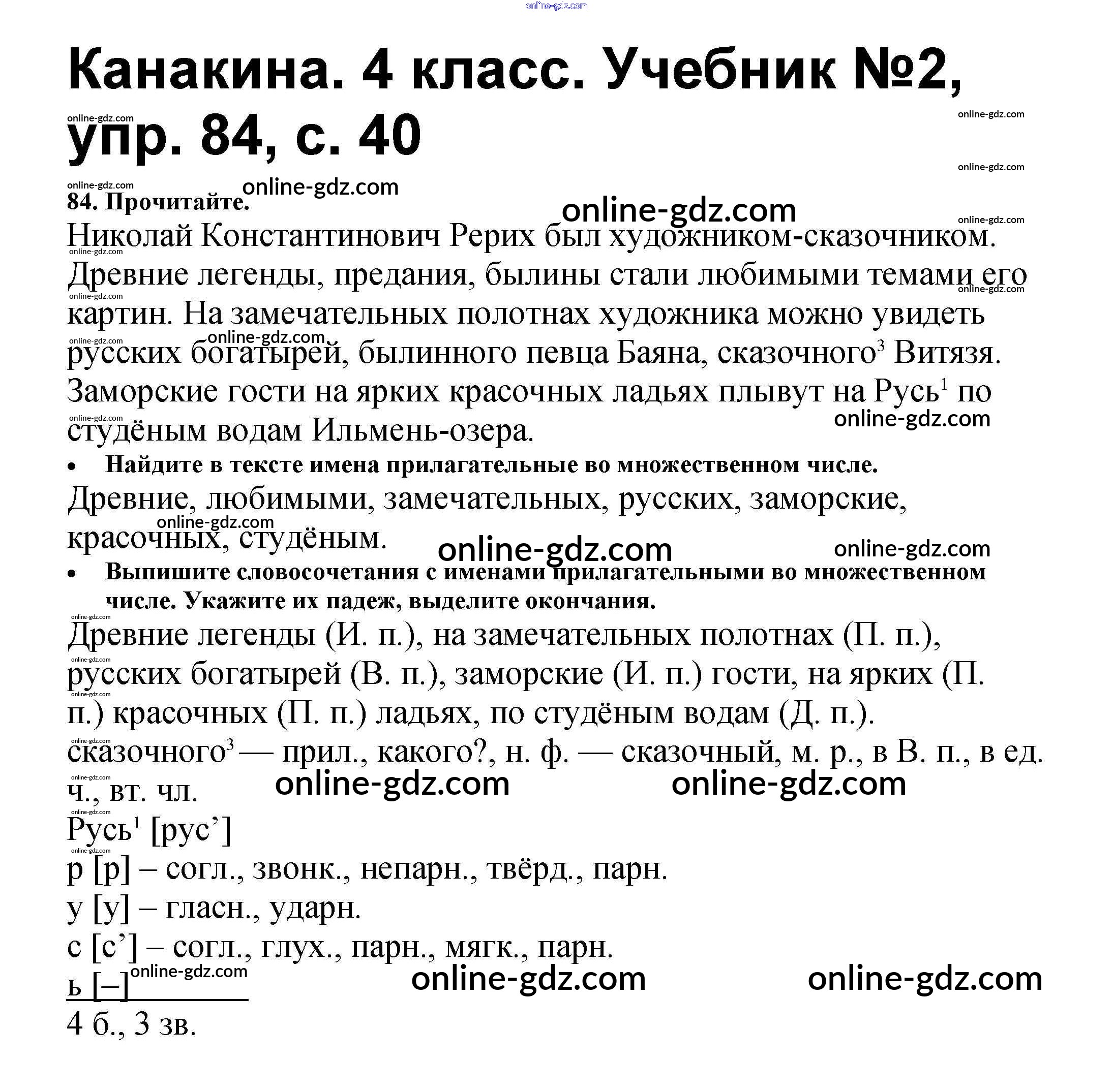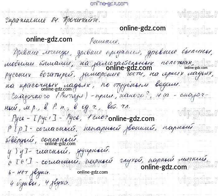 Готовые домашние задания по Русскому языку за 4 класс Учебник Канакина, Горецкий Школа России 2015 - Часть 2 84