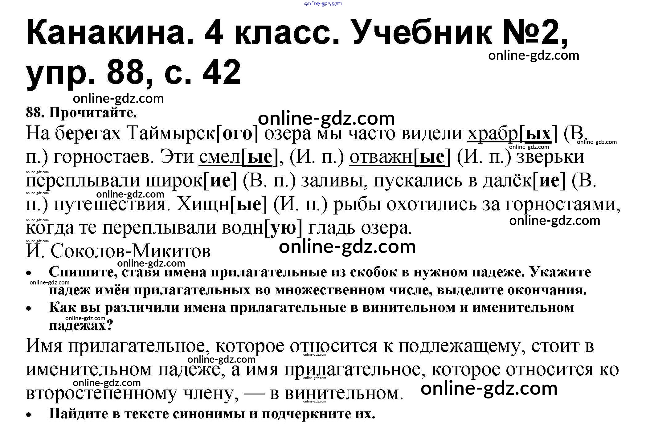 Готовые домашние задания по Русскому языку за 4 класс Учебник Канакина, Горецкий Школа России 2015 - Часть 2 88