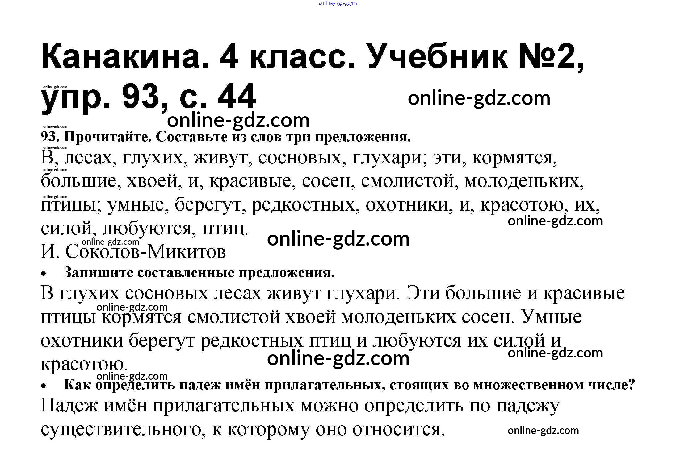 Готовые домашние задания по Русскому языку за 4 класс Учебник Канакина, Горецкий Школа России 2015 - Часть 2 93