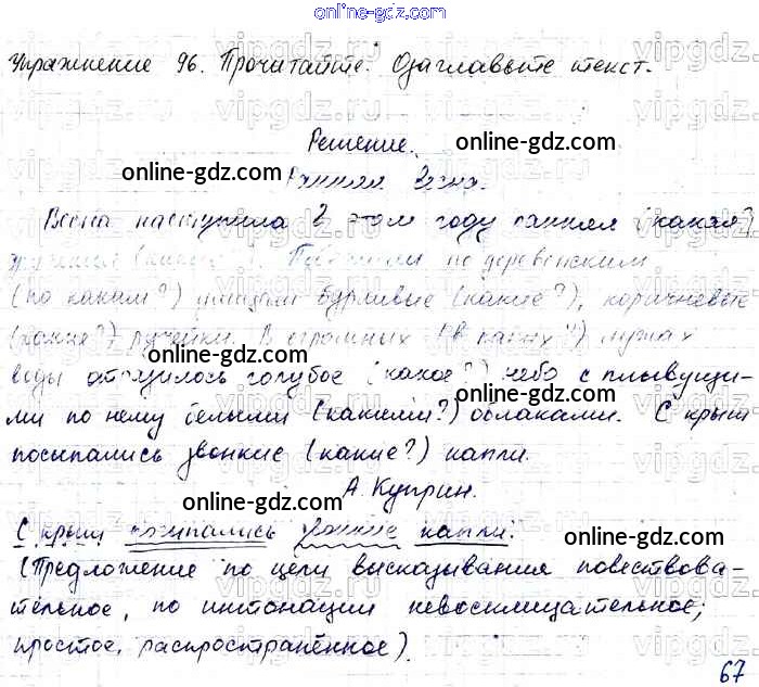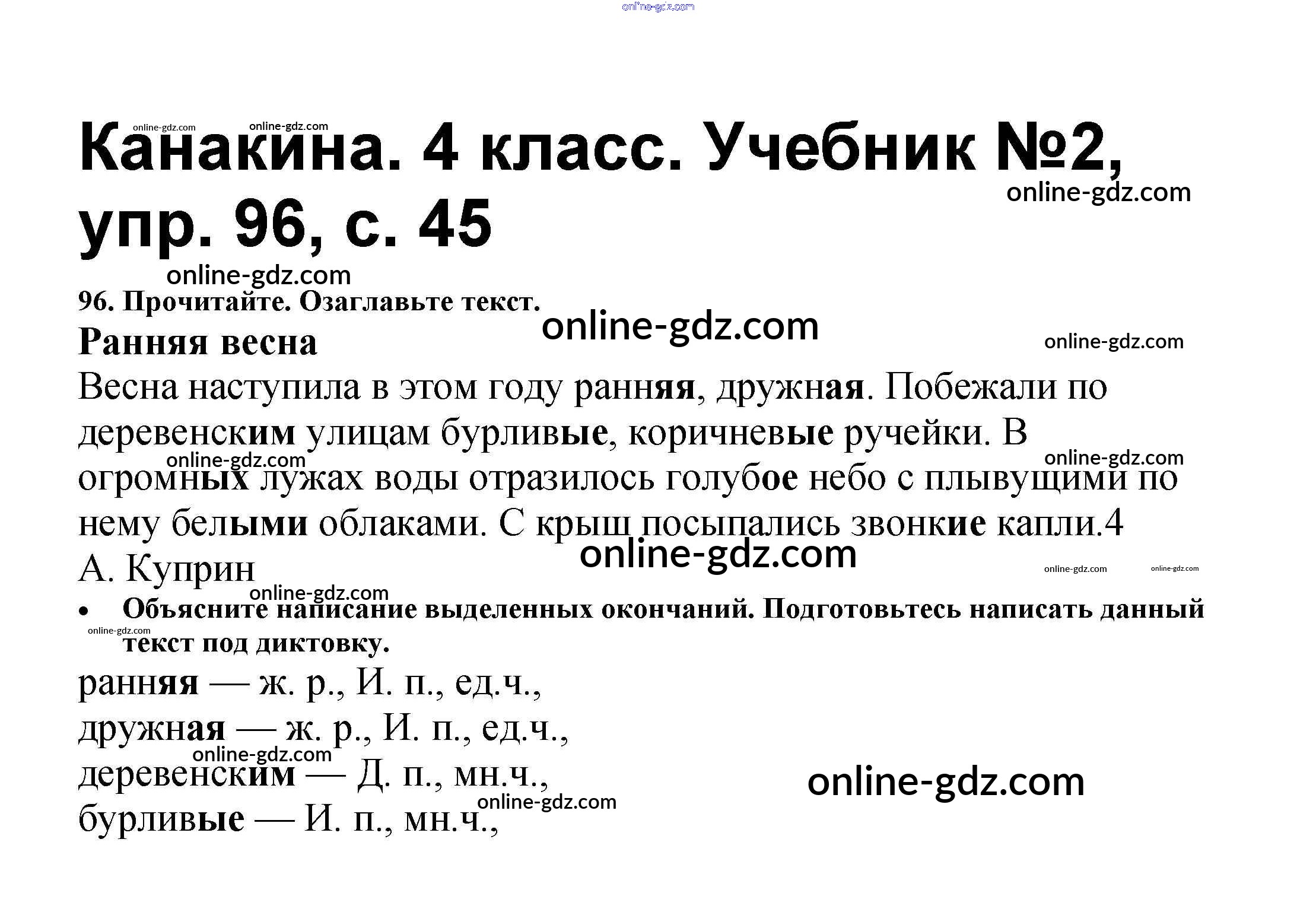 Готовые домашние задания по Русскому языку за 4 класс Учебник Канакина, Горецкий Школа России 2015 - Часть 2 96