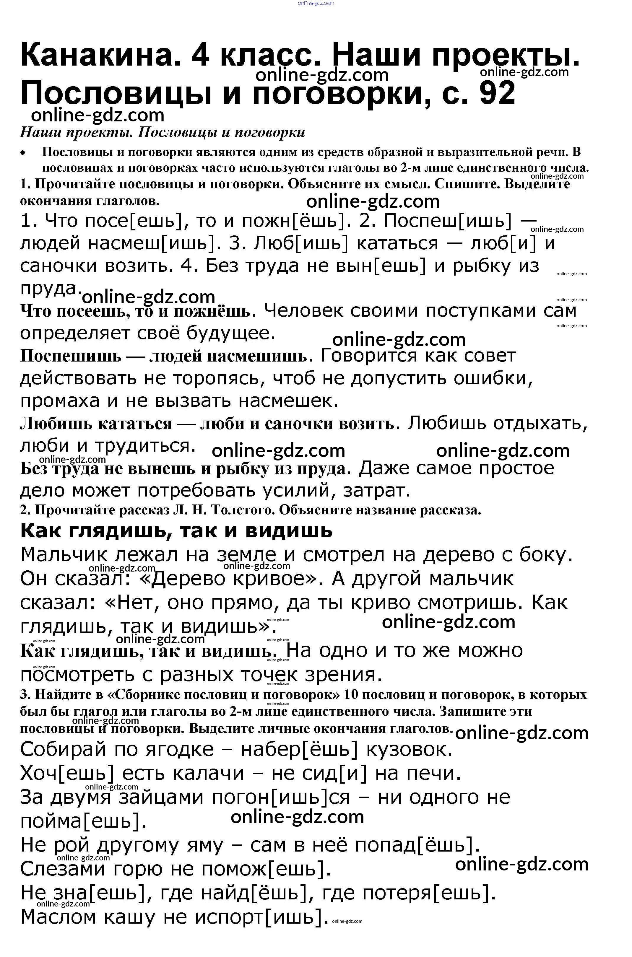 Готовые домашние задания по Русскому языку за 4 класс Учебник Канакина, Горецкий Школа России 2015 - Часть 2 Наши проекты Пословицы и поговорки