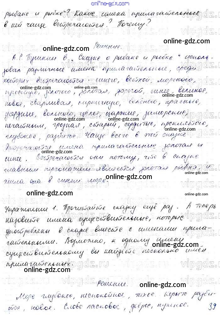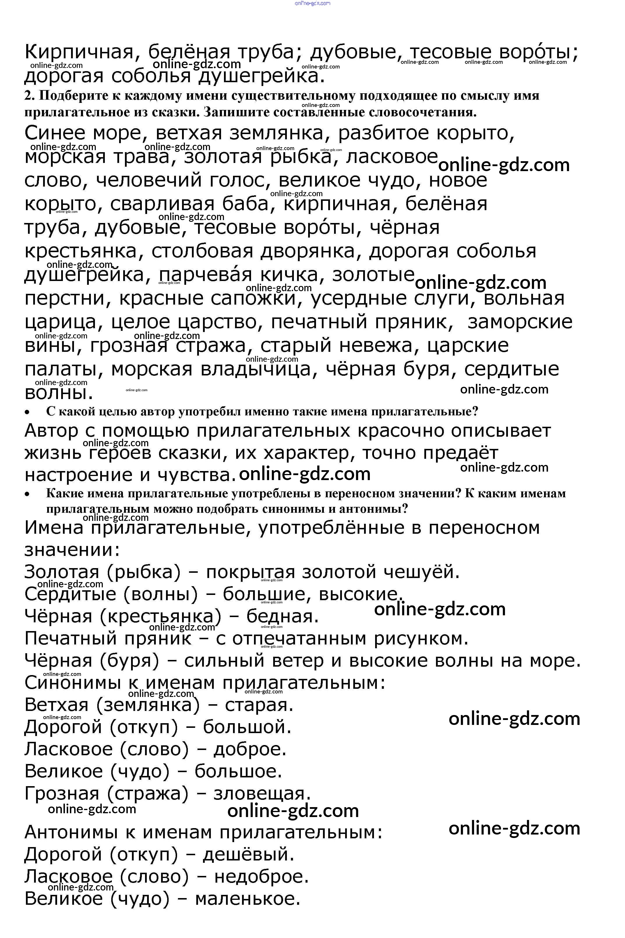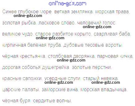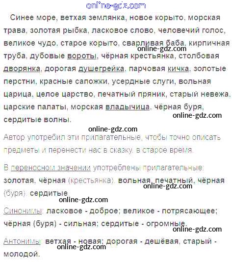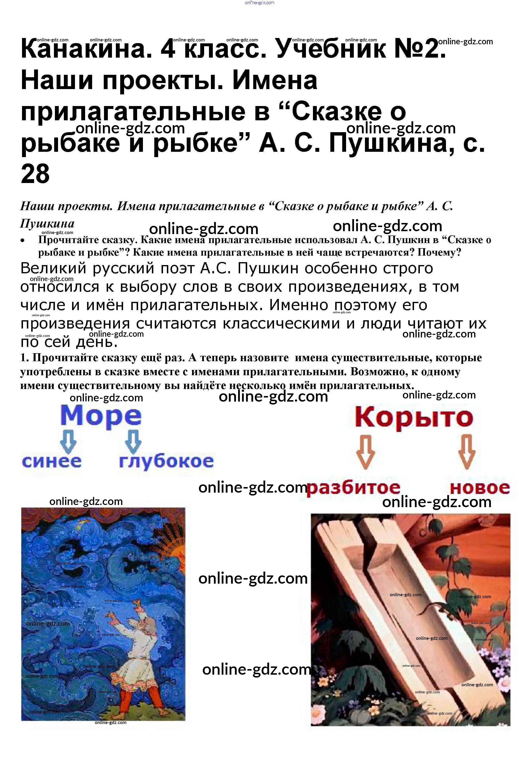 Готовые домашние задания по Русскому языку за 4 класс Учебник Канакина, Горецкий Школа России 2015 - Часть 2 Наши проекты Имена прилагательные в Сказке о рыбаке и рыбке А. С. Пушкина