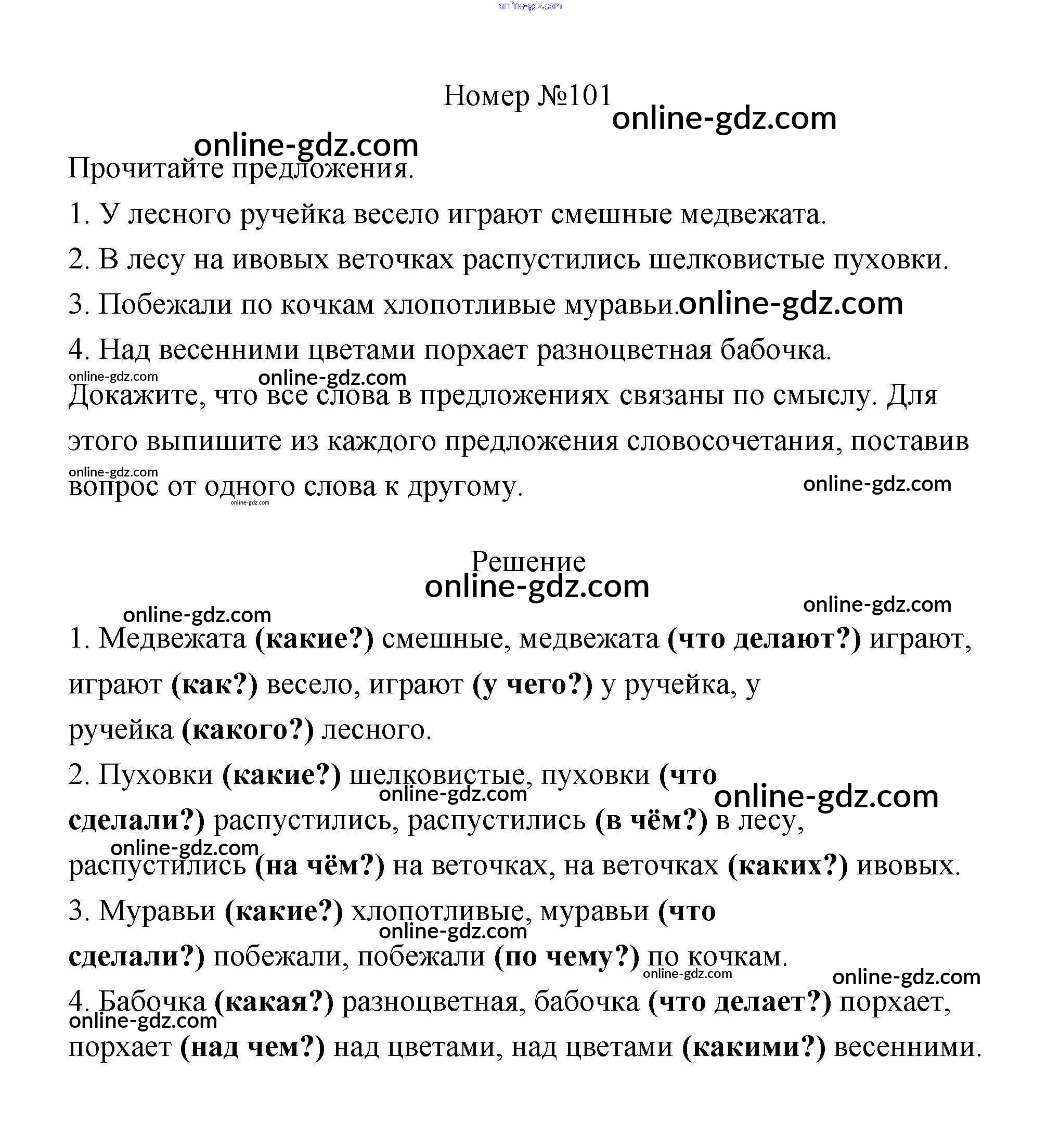 Готовые домашние задания по Русскому языку за 4 класс Учебник Климанова, Бабушкина Перспектива 2014 - Часть 1 101