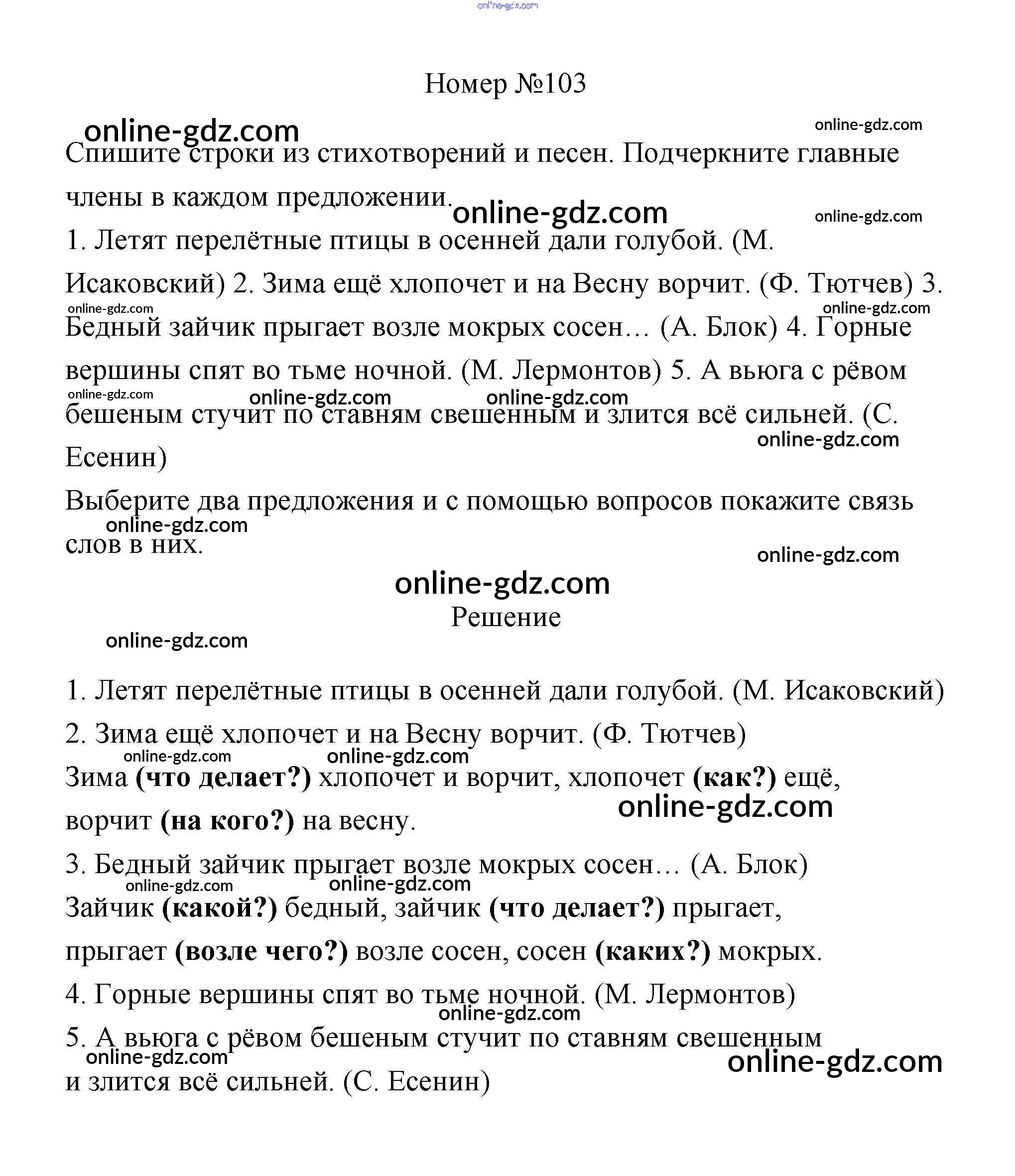 Готовые домашние задания по Русскому языку за 4 класс Учебник Климанова, Бабушкина Перспектива 2014 - Часть 1 103