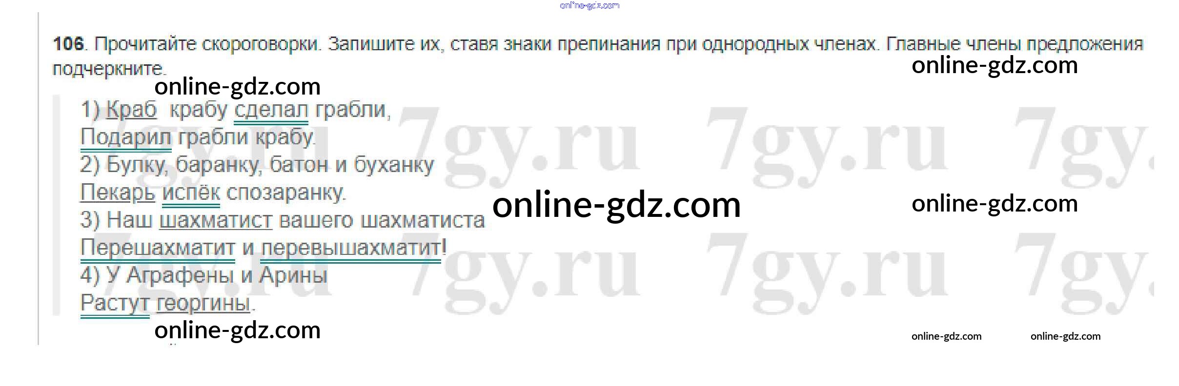 Готовые домашние задания по Русскому языку за 4 класс Учебник Климанова, Бабушкина Перспектива 2014 - Часть 1 106