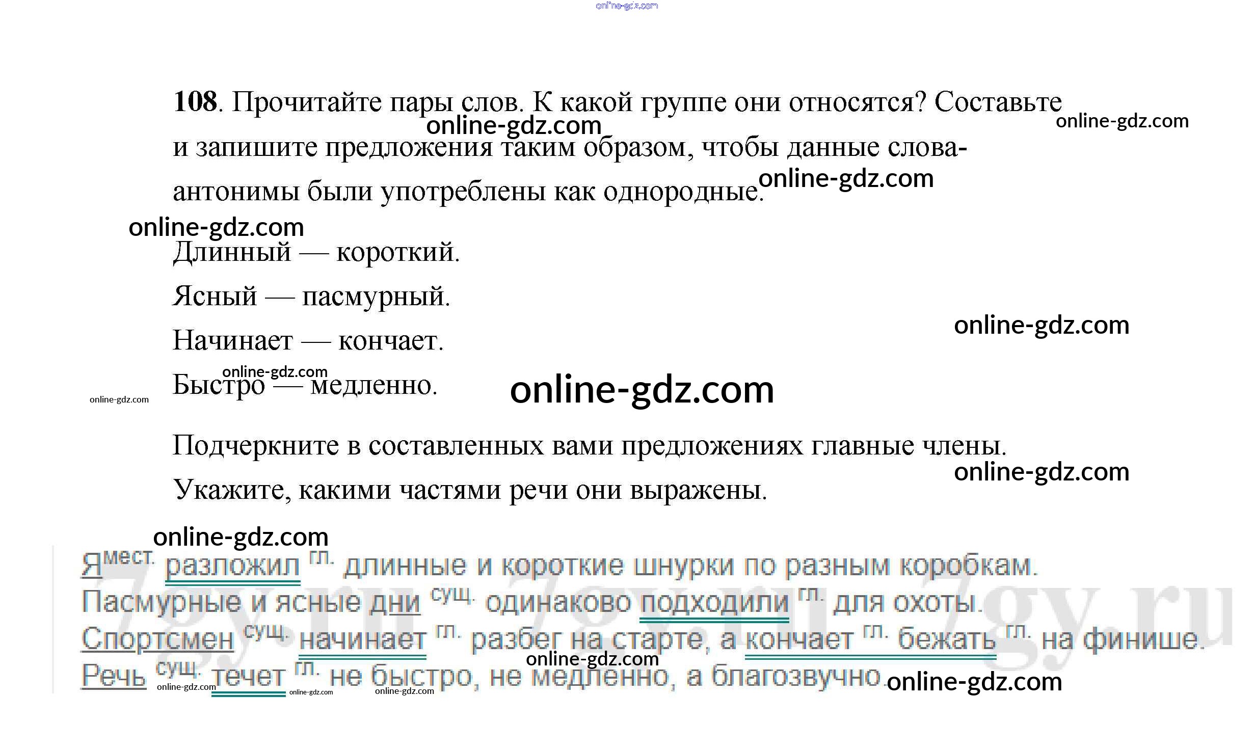 Готовые домашние задания по Русскому языку за 4 класс Учебник Климанова, Бабушкина Перспектива 2014 - Часть 1 108